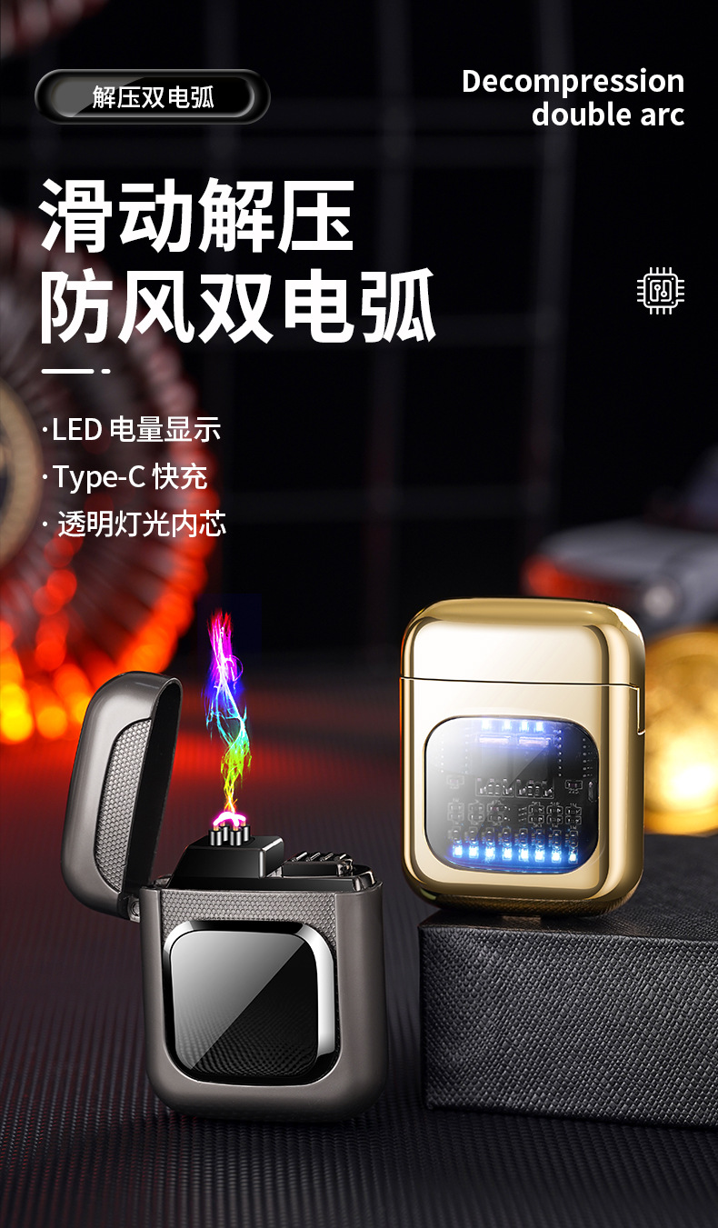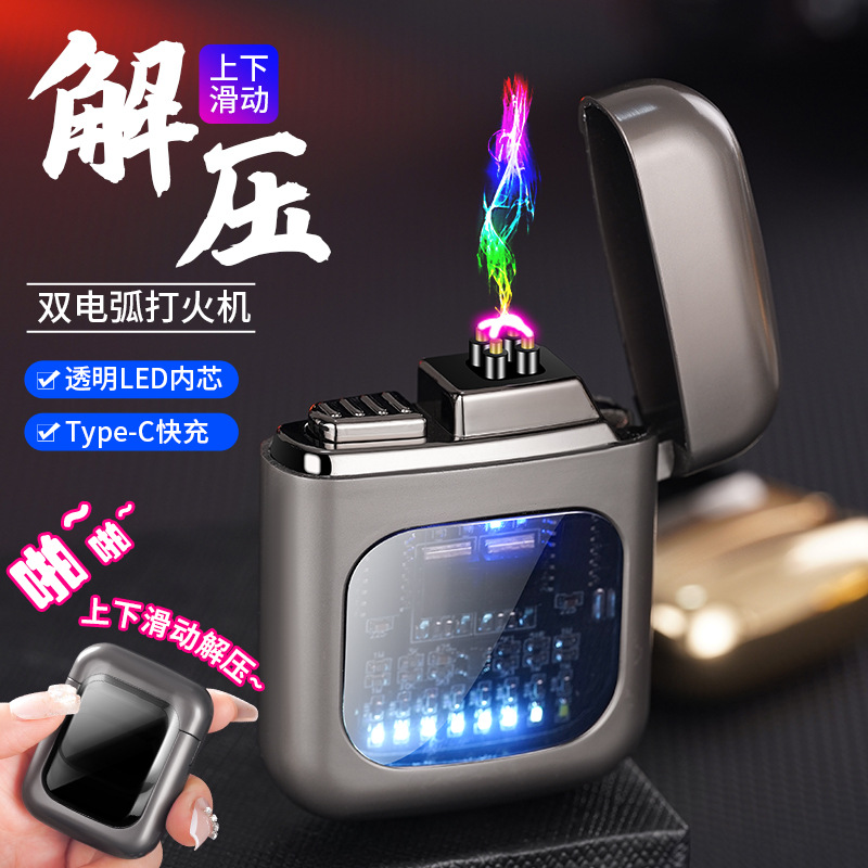 2024新款解压啪啪滑块电弧打火机USB充电点烟器创意潮流工厂批发