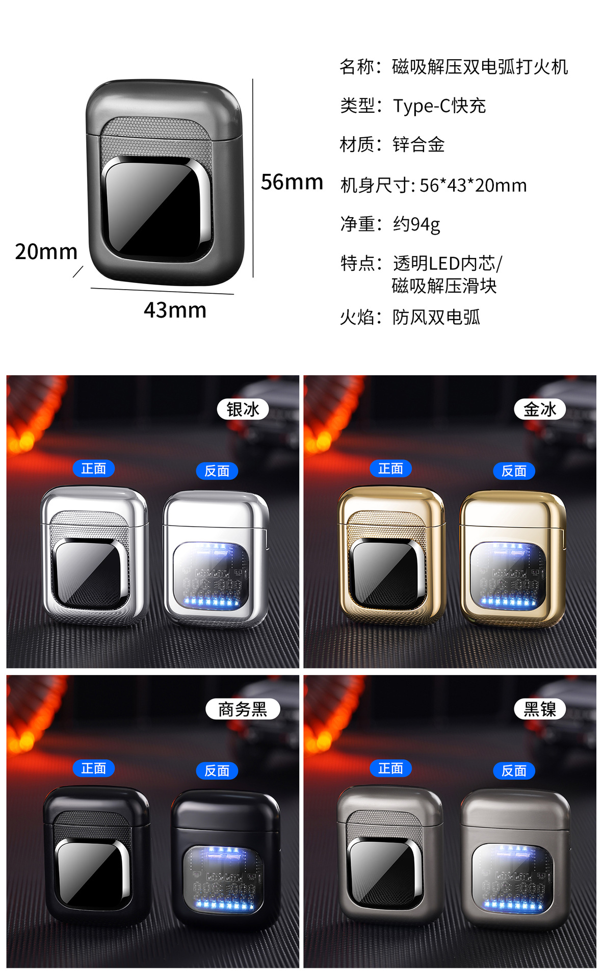 2024新款解压啪啪滑块电弧打火机USB充电点烟器创意潮流工厂批发 投诉