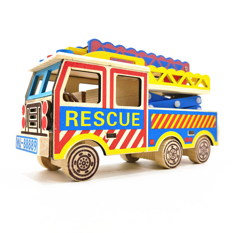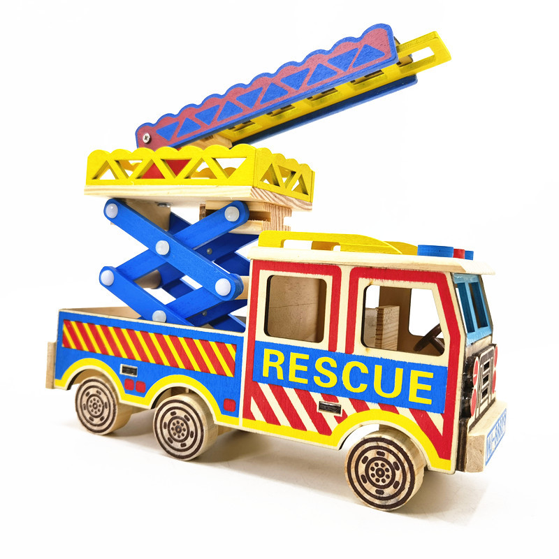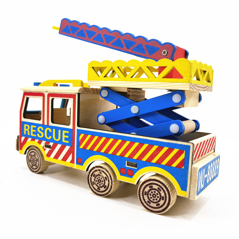 批发木制工艺品摆件仿真消防云梯车创意家居模型木质摆件生日礼品