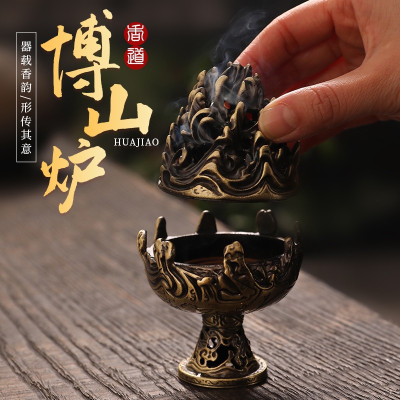 迷你仿古博山炉青铜香炉复刻汉代错金铜博山炉家用沉香檀香炉室内