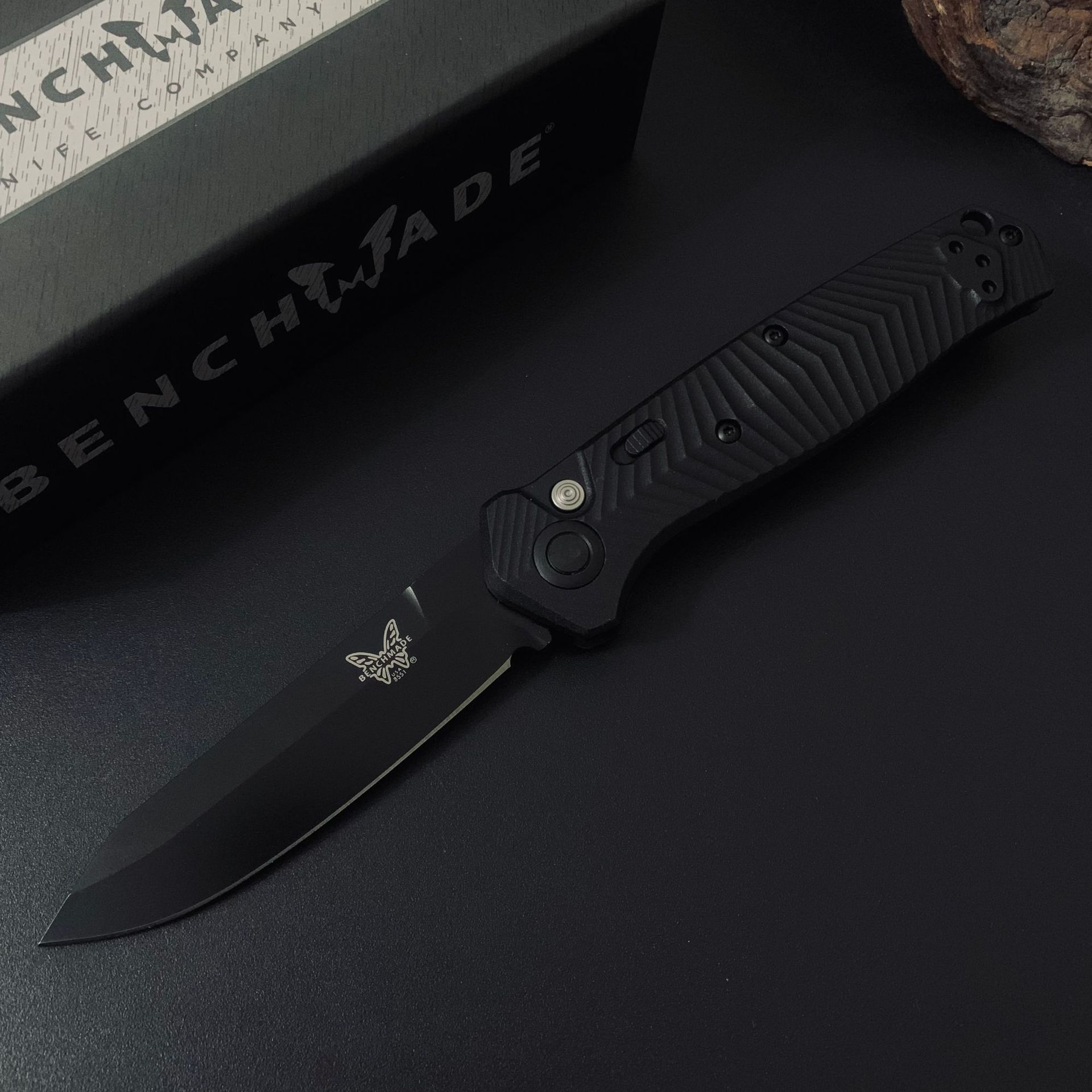 跨境户外野营折叠刀8551BK玻纤柄石洗/黑色镀钛荒野求生口袋小刀