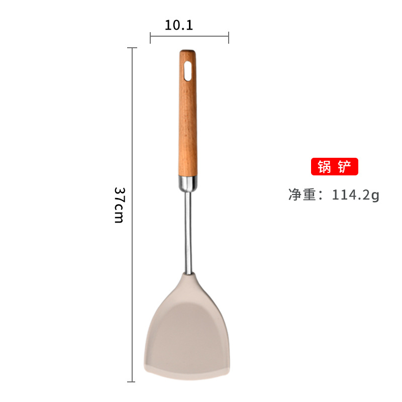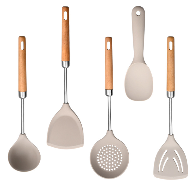 现货厂家直供榉木柄硅胶厨具304不锈钢硅胶铲勺硅胶锅铲5件套装