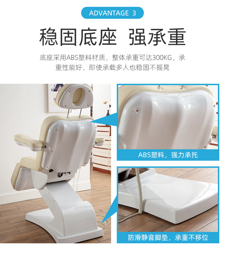 三个电机分别控制靠背,腿部,整体升降。220V欧式两圆插。中性 英文纸箱加夹板条包装。
