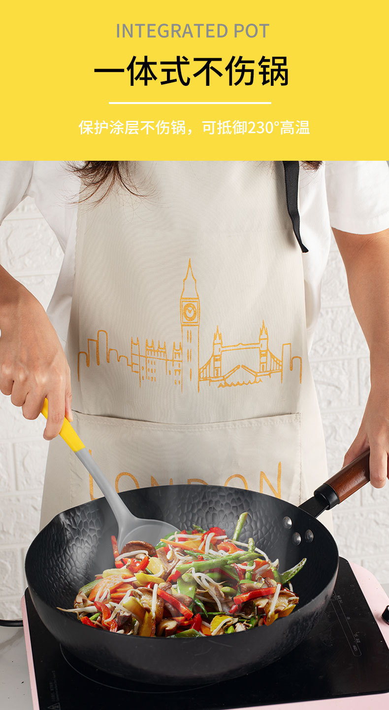 双色硅胶铲勺食品用家用长手柄可挂式烹饪铲勺汤勺捞篱厨房工具 投诉