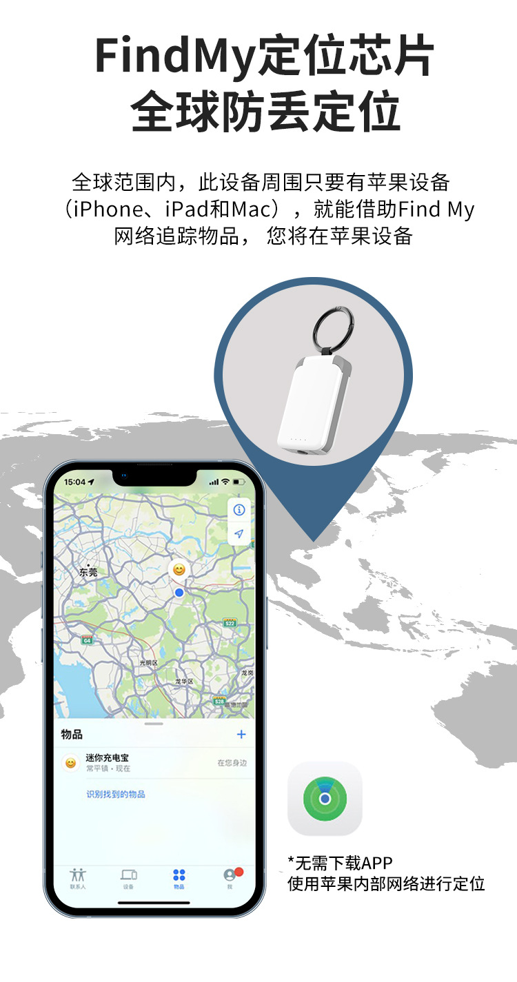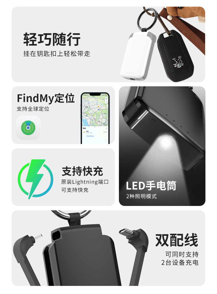 防丢充电宝适用AirTag钥匙扣Mfi认证findmy查找丢失定位器