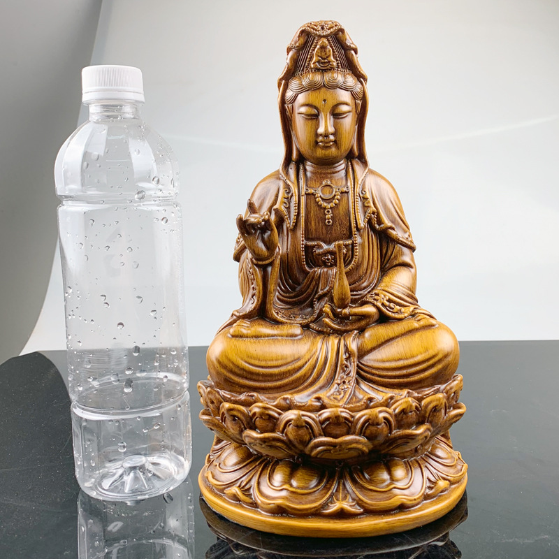 观音摆件 树脂仿檀木大慈大悲观世音菩萨摆件 中式家居客厅摆件