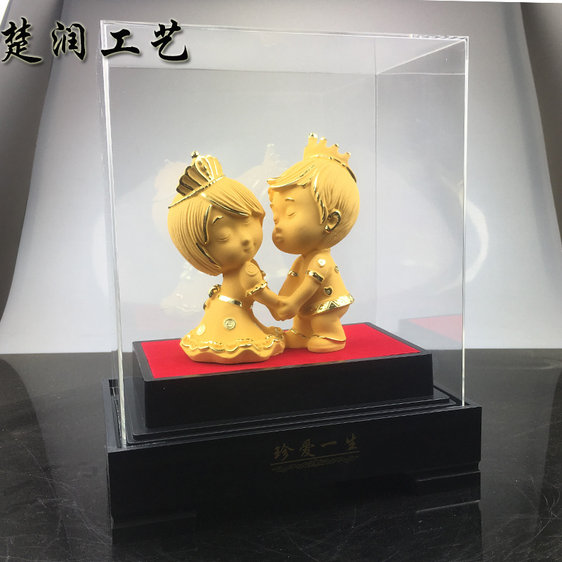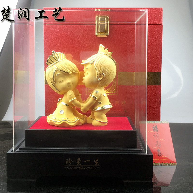 结婚礼品绒沙金中号珍爱一生结婚礼物新郎新娘摆件送朋友结婚礼物