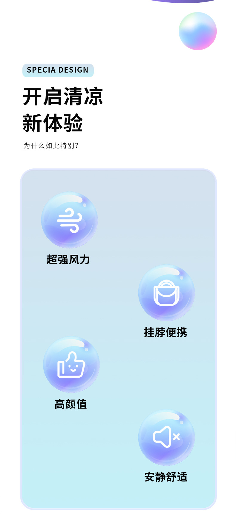 电源方式: 锂电池,UBS 规格: 8*5*10CM 噪音: 36-45dB(含) 额定功率: 2.1 品牌: 朝日 风速档位: 2档 操作方式: 普通按钮 是否支持充电: 支持 包装体积: 6.7*6.7*10.15CM 颜色: 粉,紫,浅蓝,深蓝