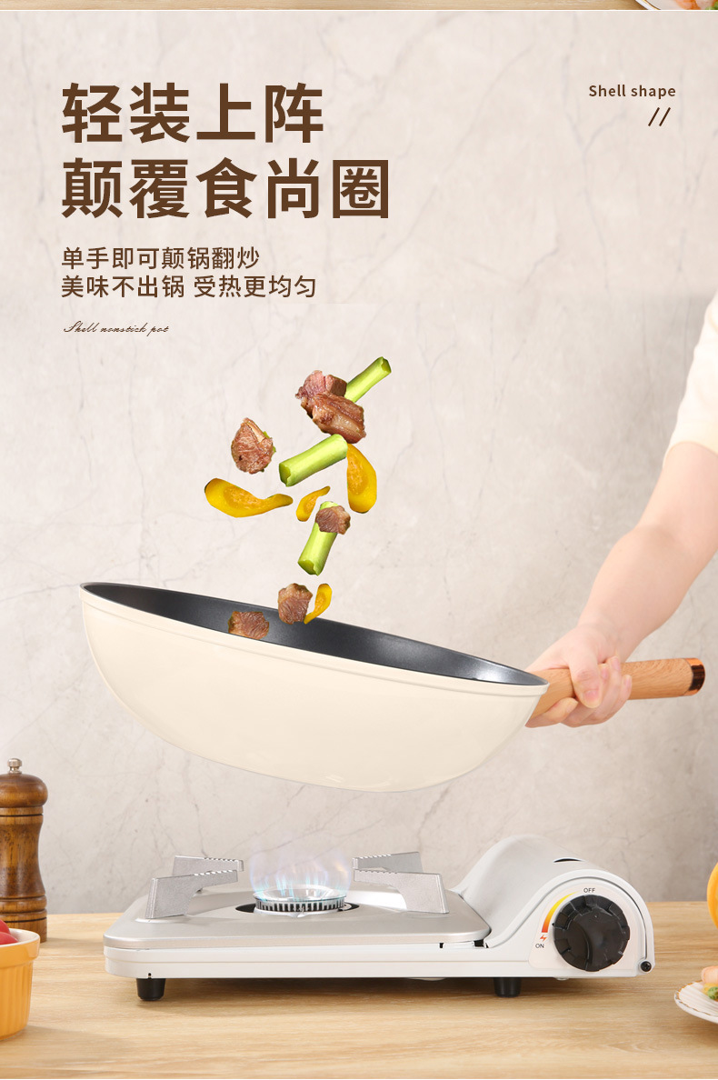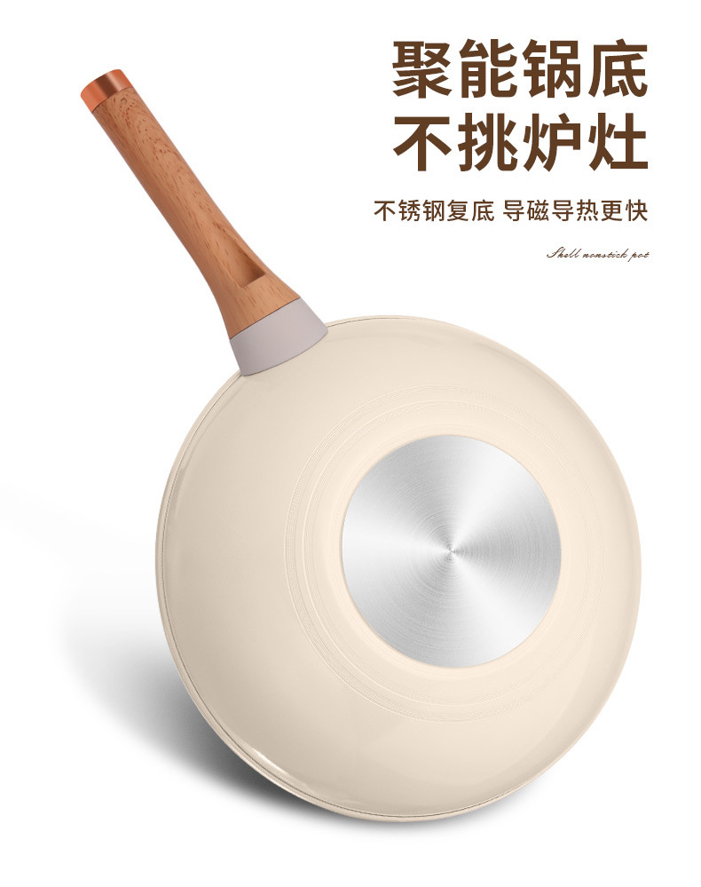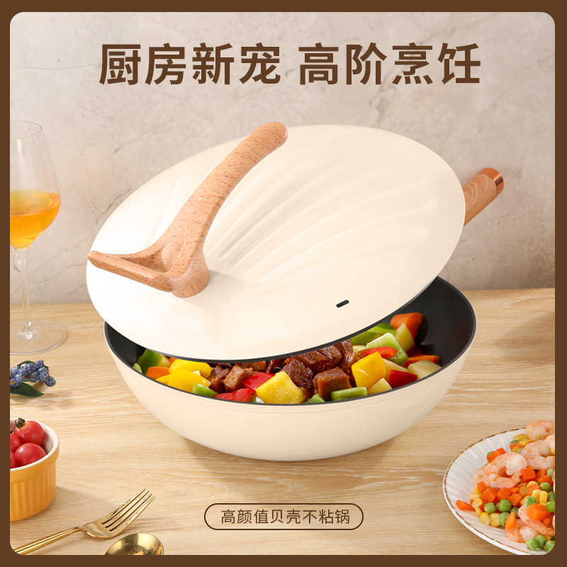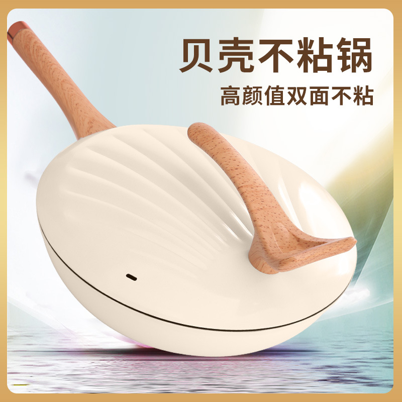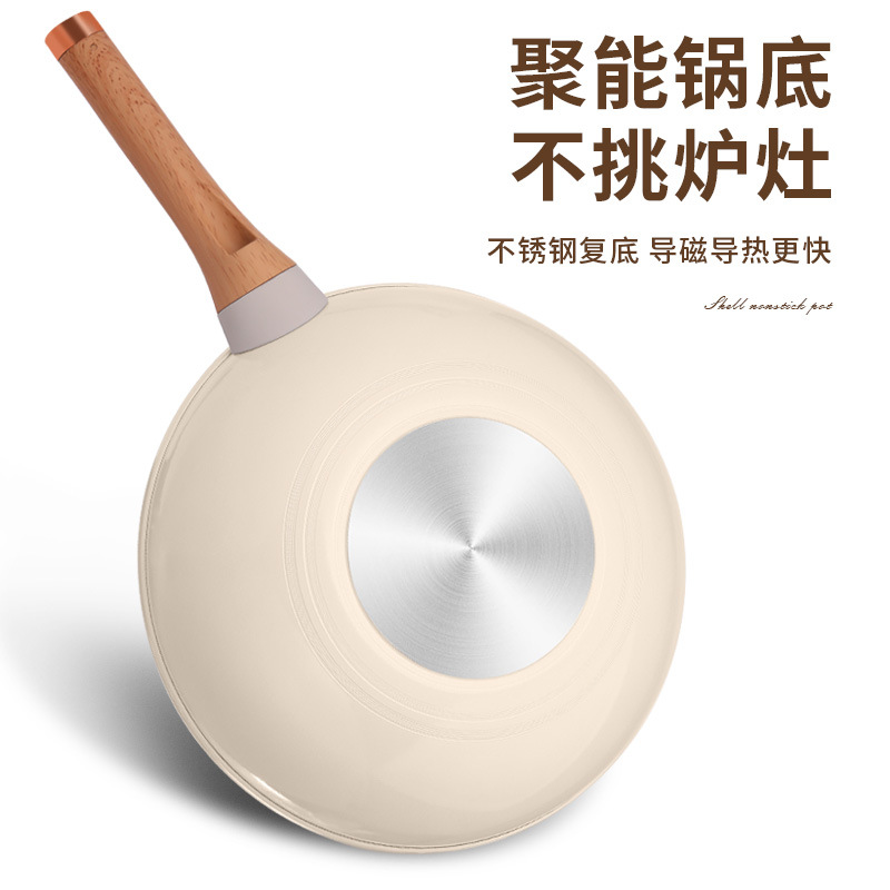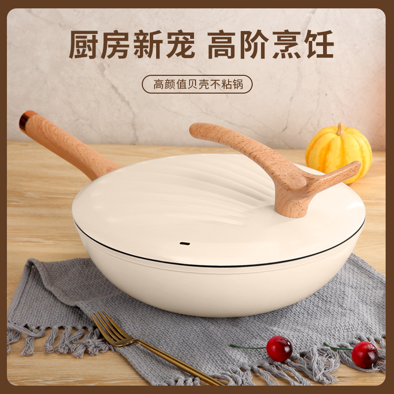 跨境批发家用多功能复底贝壳炒锅不粘炒菜锅燃气通用礼品锅