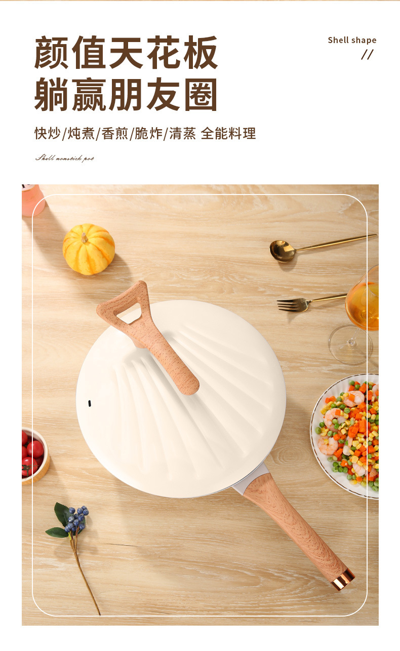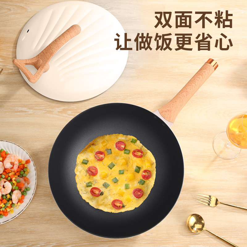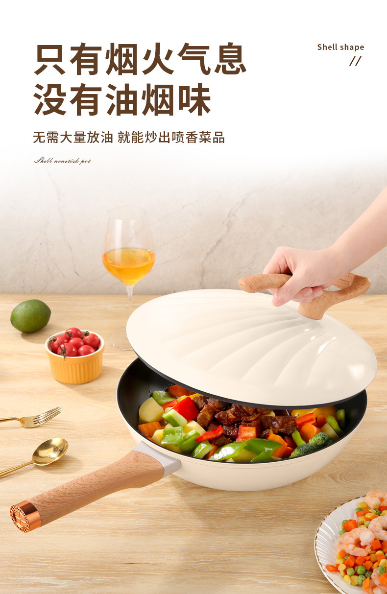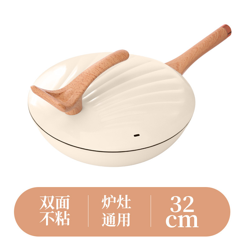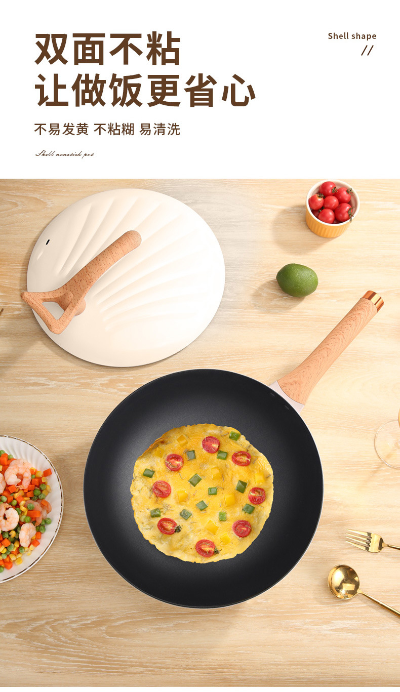 跨境批发家用多功能复底贝壳炒锅不粘炒菜锅燃气通用礼品锅