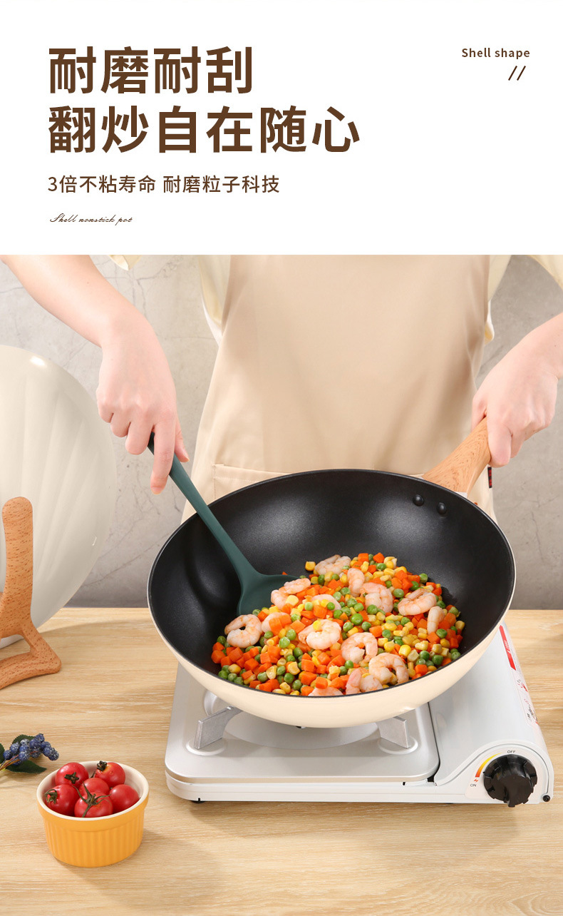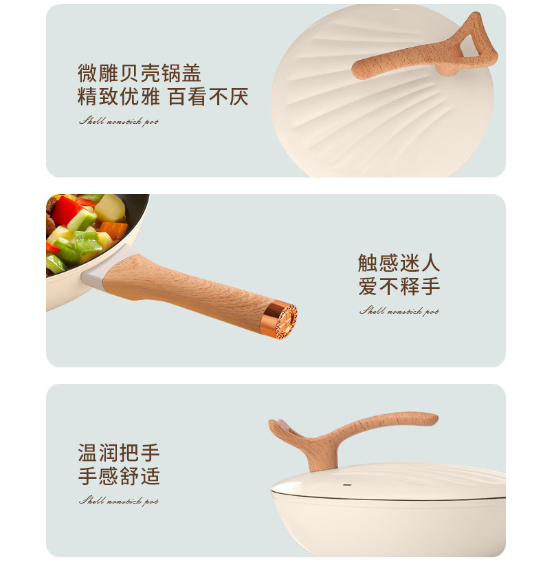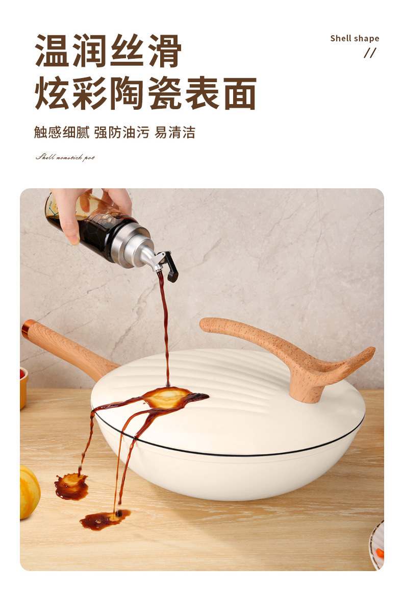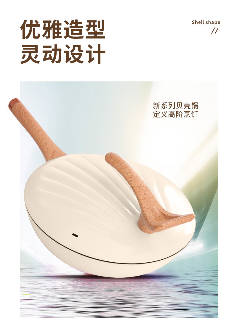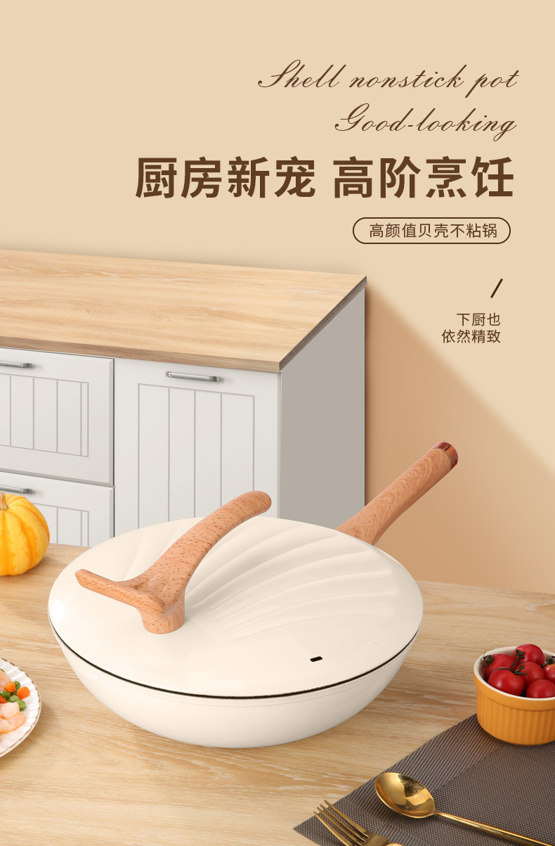 跨境批发家用多功能复底贝壳炒锅不粘炒菜锅燃气通用礼品锅