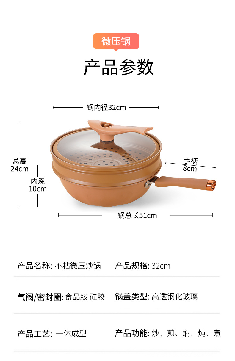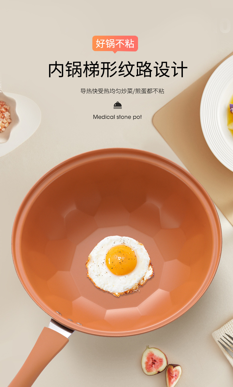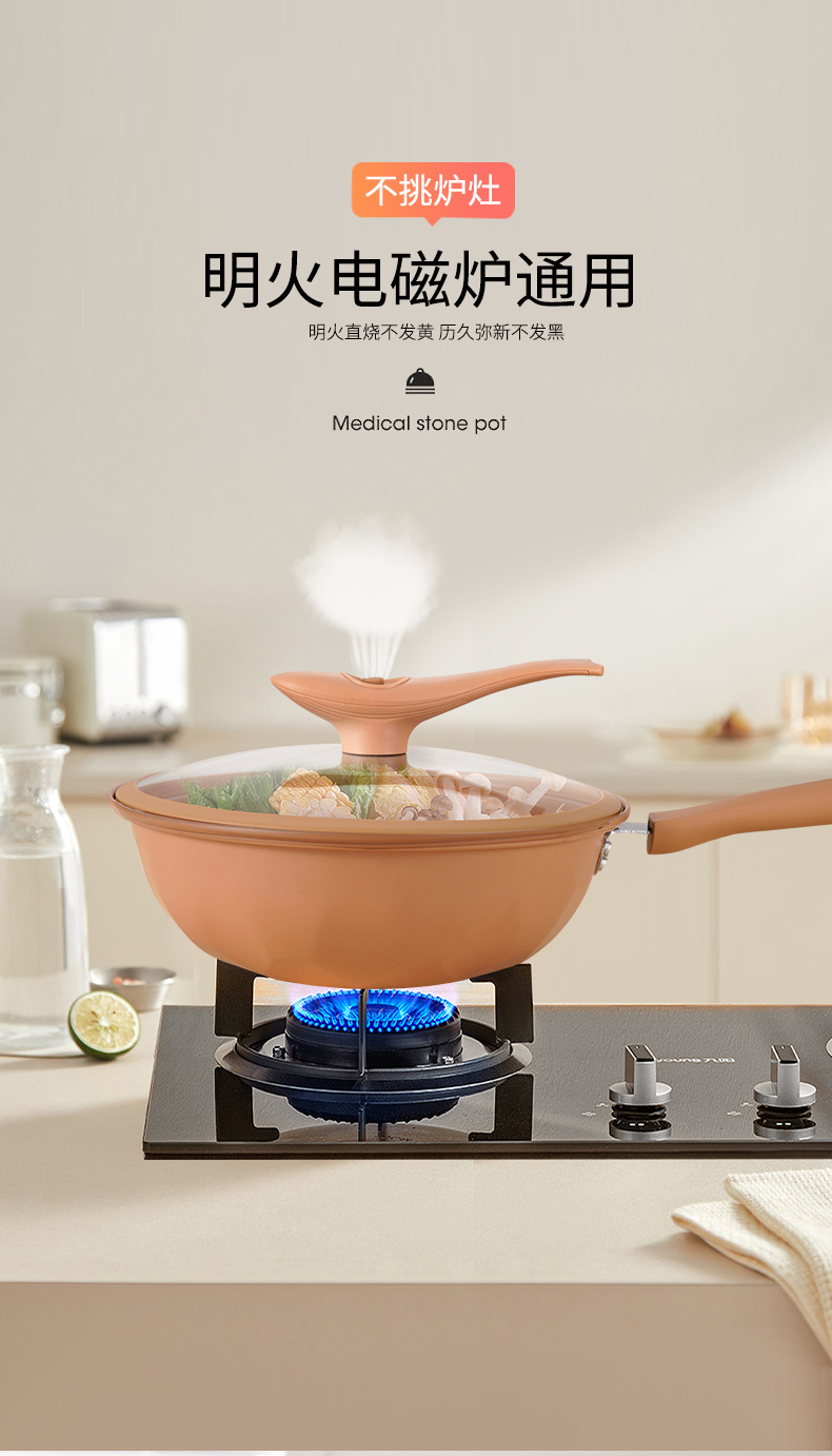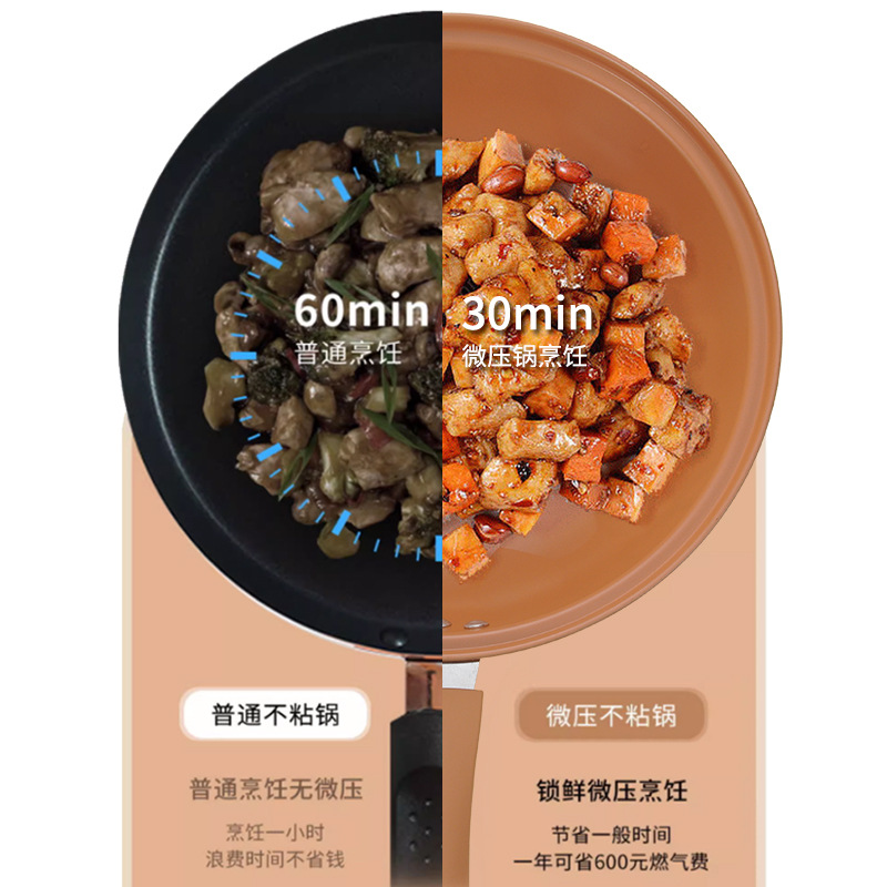厂家批发抖音直播陶土微压不粘锅无涂层炒锅家用炒菜锅电磁炉通用