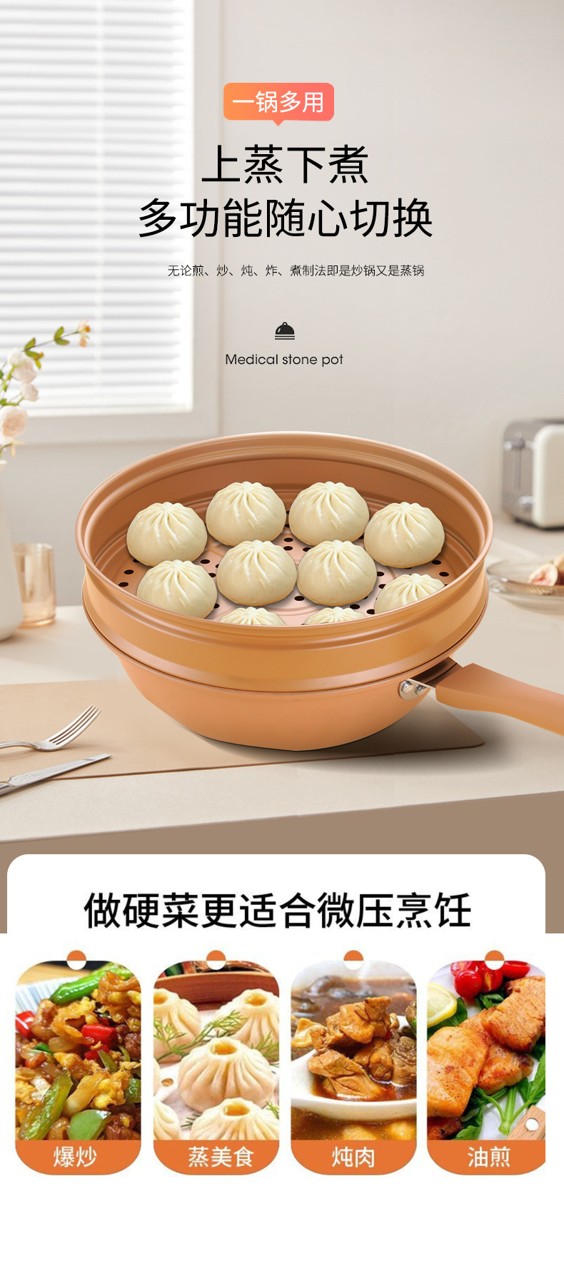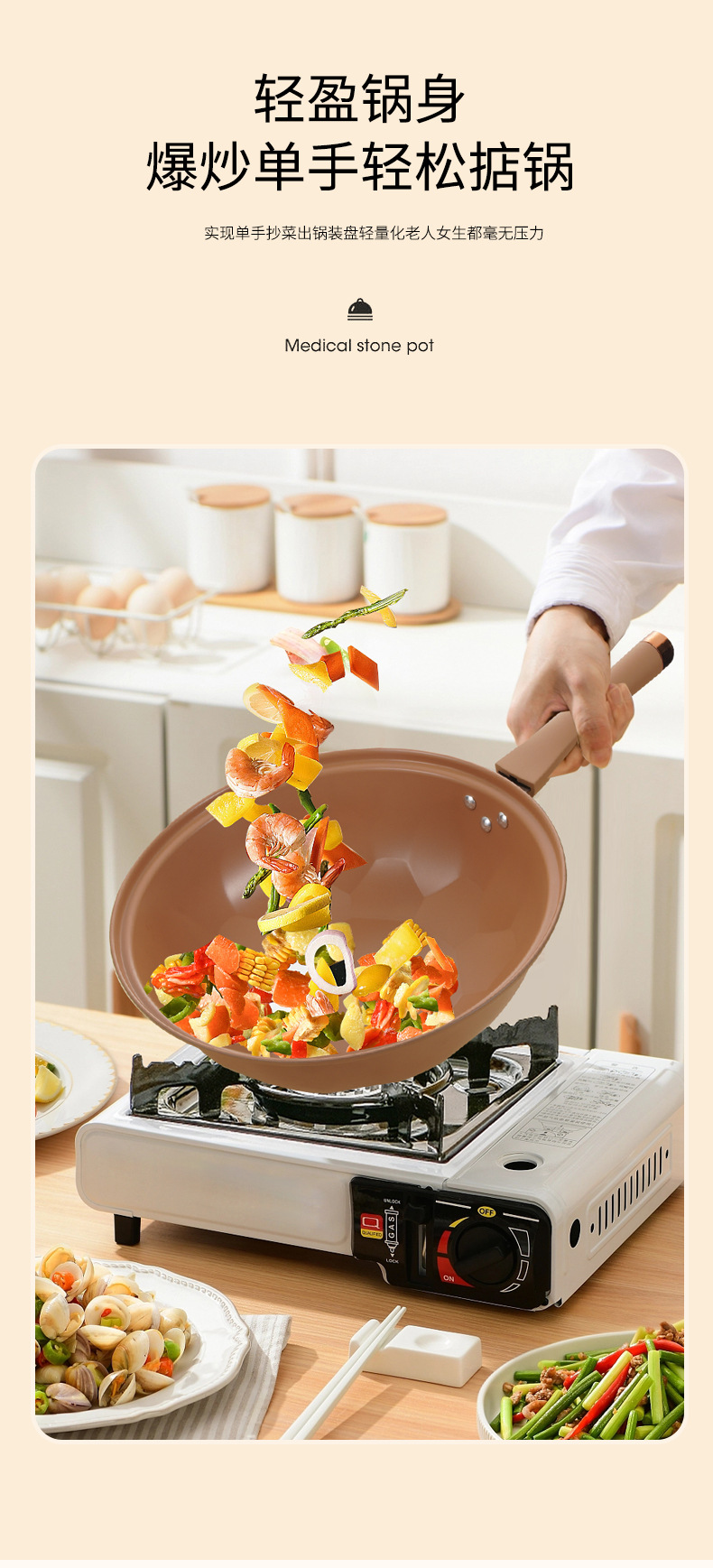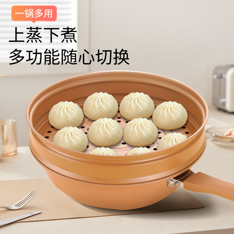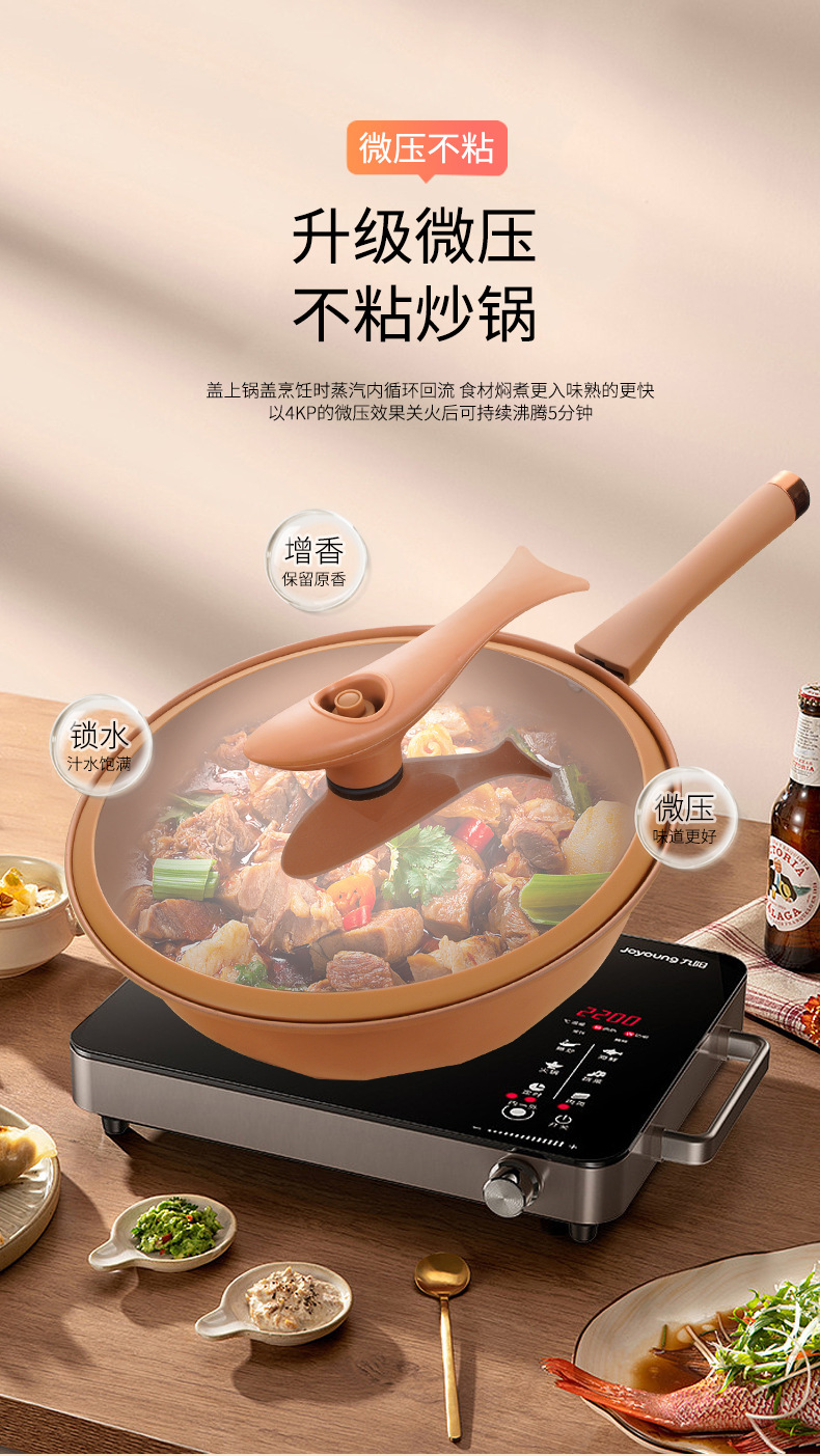厂家批发抖音直播陶土微压不粘锅无涂层炒锅家用炒菜锅电磁炉通用