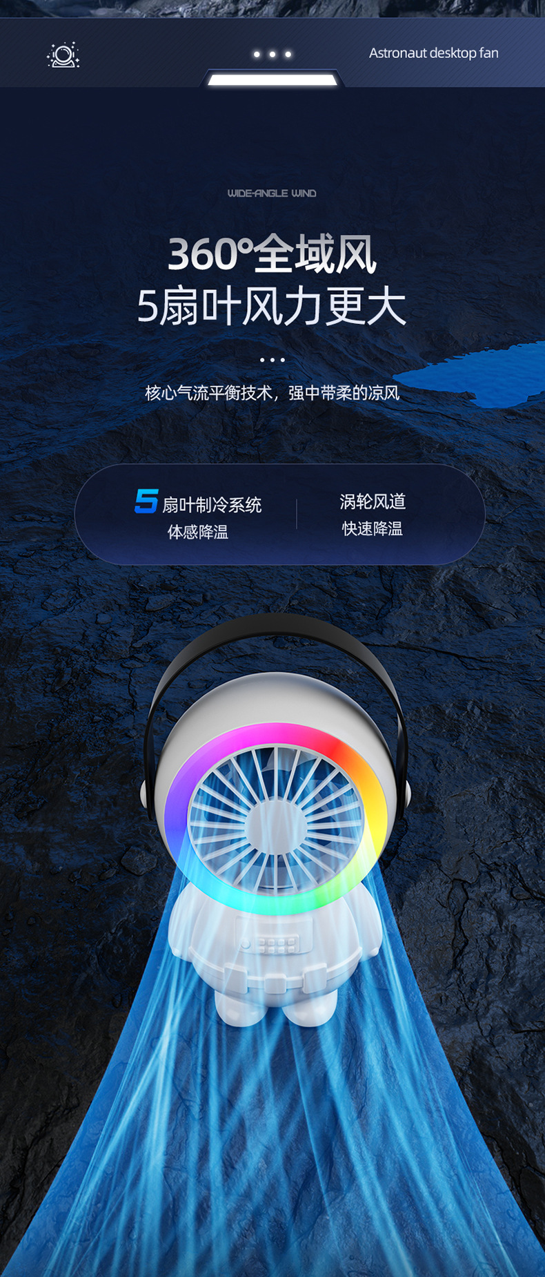 跨境新款七彩幻灯太空宇航风扇手提三挡家用户外充电USB风扇 批发 English | 投诉