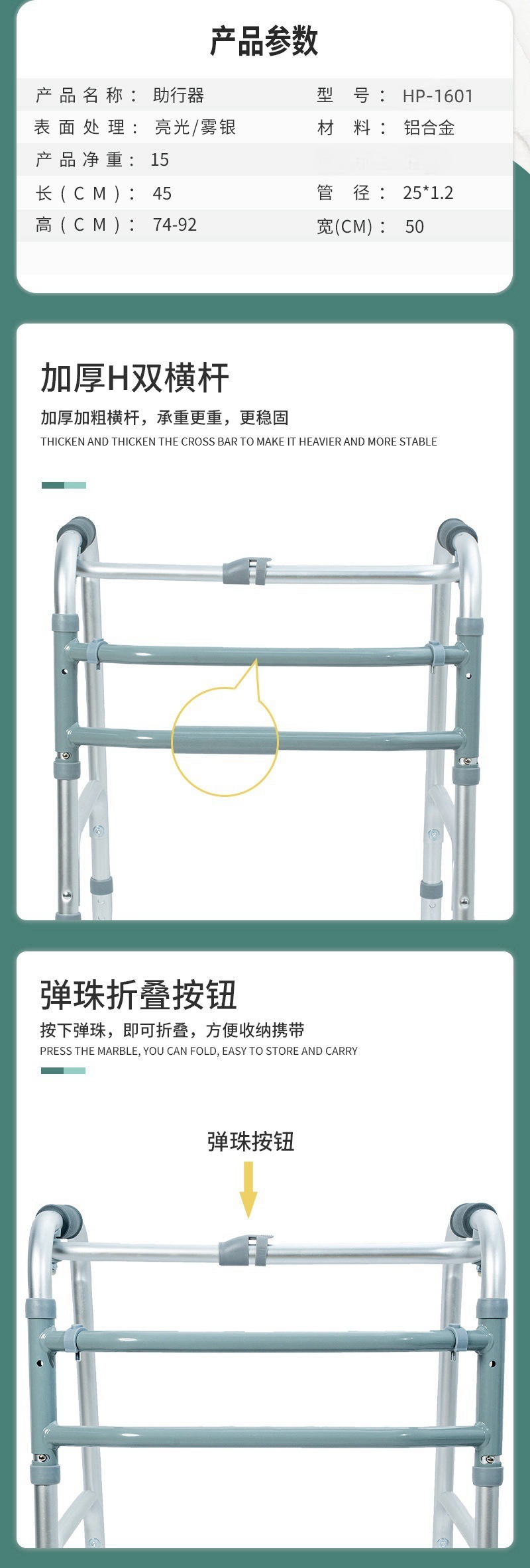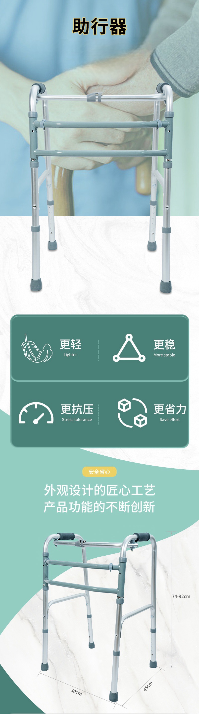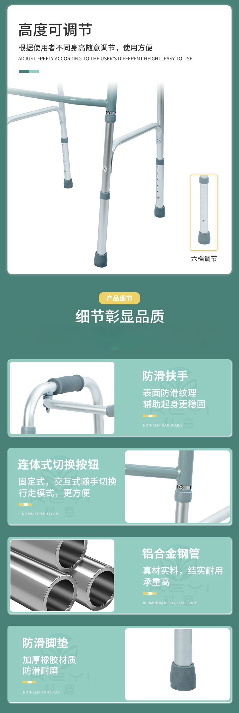 老人助行器 铝合金四脚助行带轮可高低调节折叠老年人学步器拐杖 投诉
