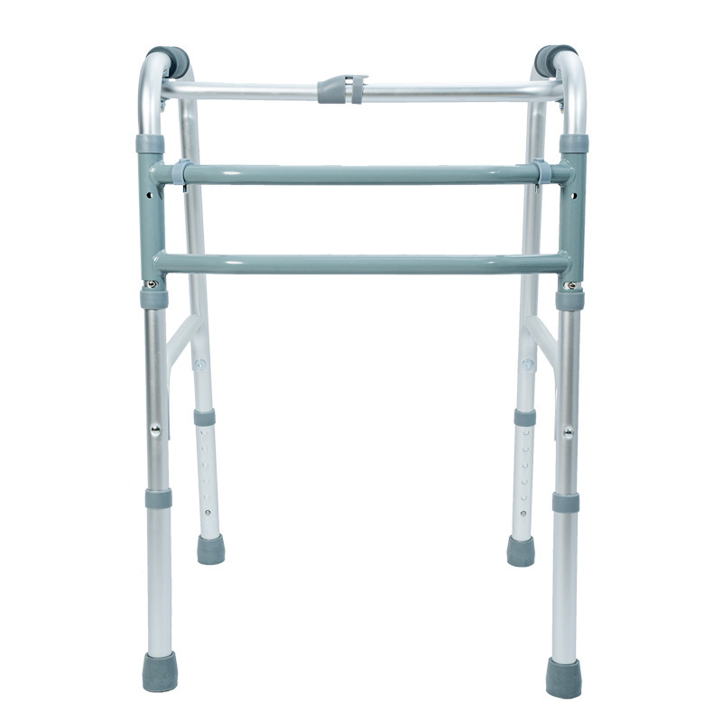 老人助行器 铝合金四脚助行带轮可高低调节折叠老年人学步器拐杖