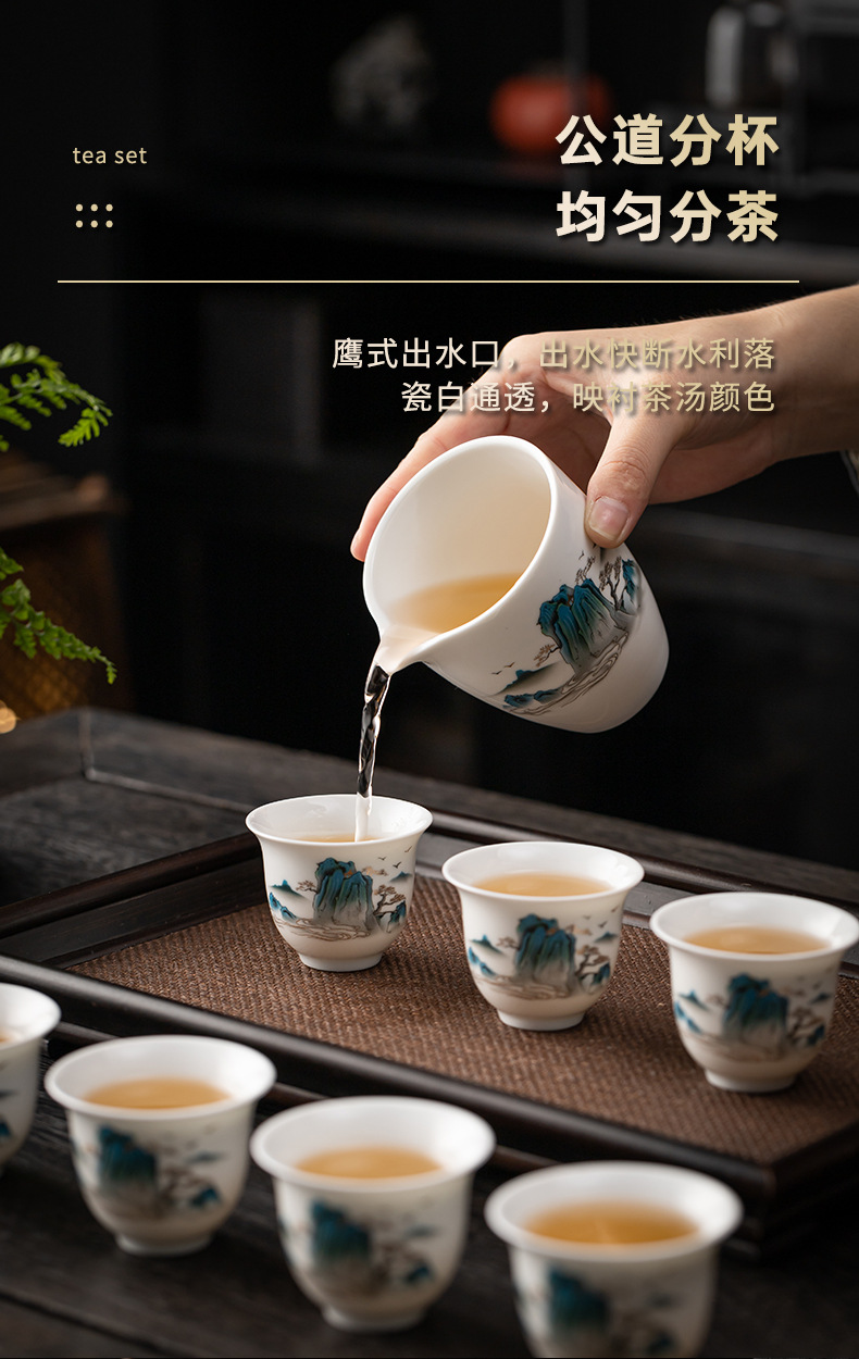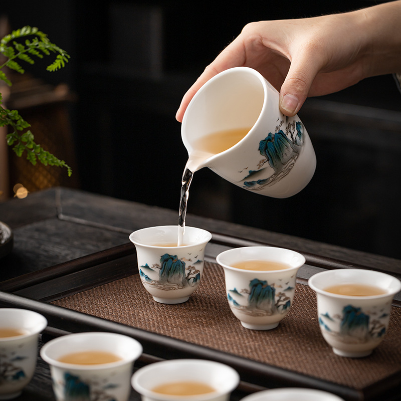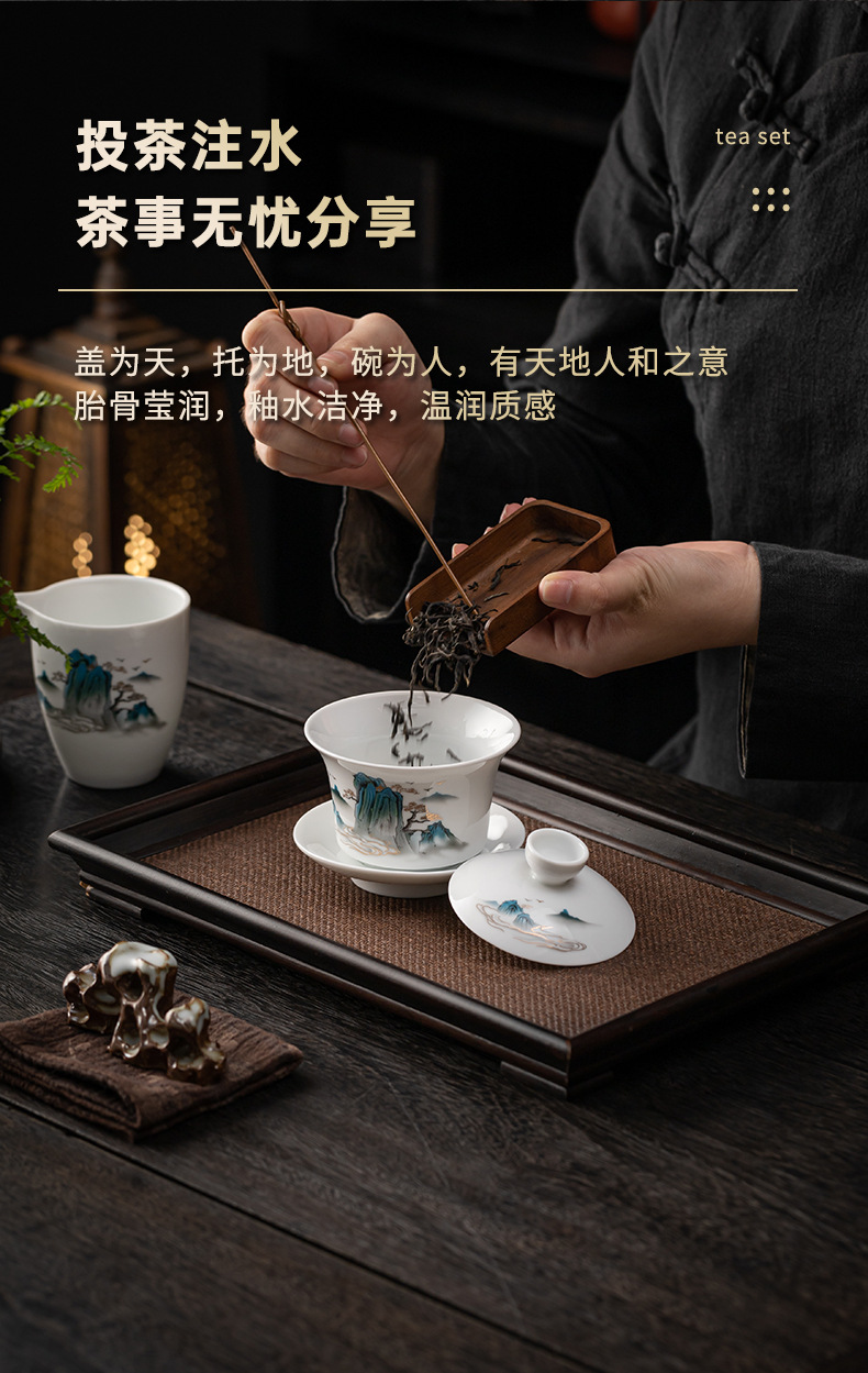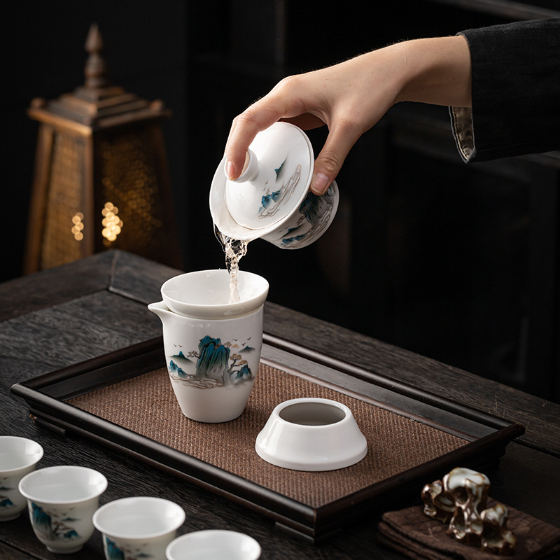 茶具套装礼盒千里江山整套茶具商务伴手礼公司年会羊脂玉瓷茶具