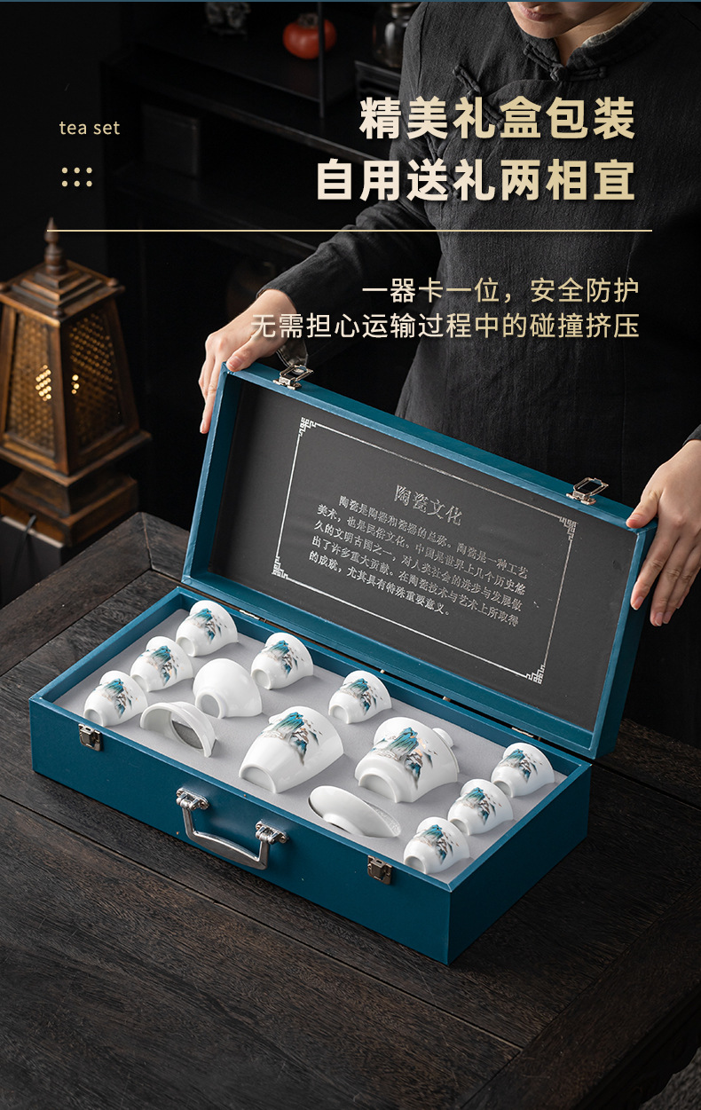 茶具套装礼盒千里江山整套茶具商务伴手礼公司年会羊脂玉瓷茶具 投诉