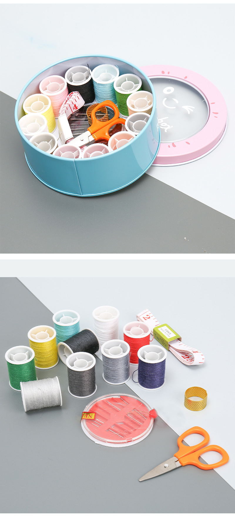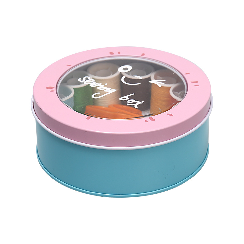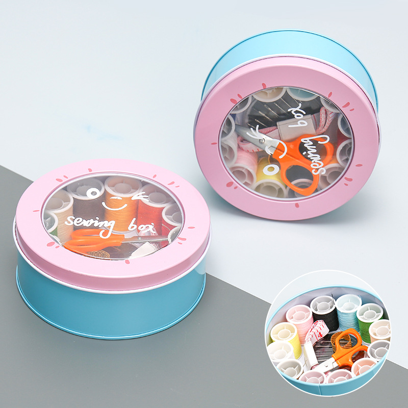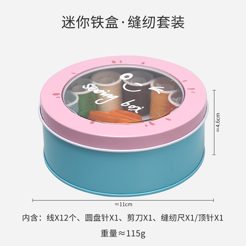 居家北欧风铁艺针线盒圆形迷你可爱针线包学生家用便携式针线套装