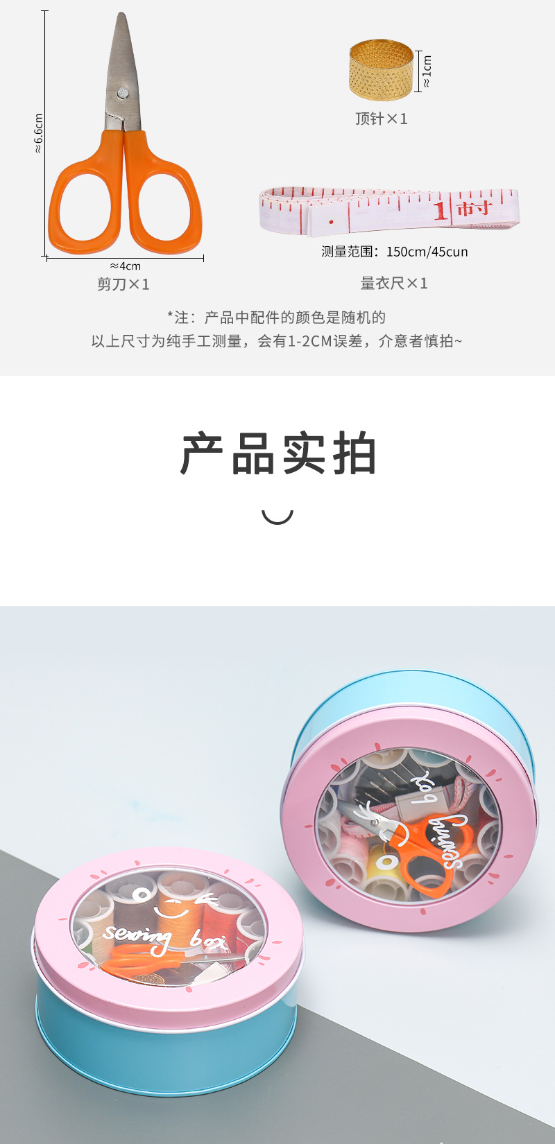 居家北欧风铁艺针线盒圆形迷你可爱针线包学生家用便携式针线套装 投诉