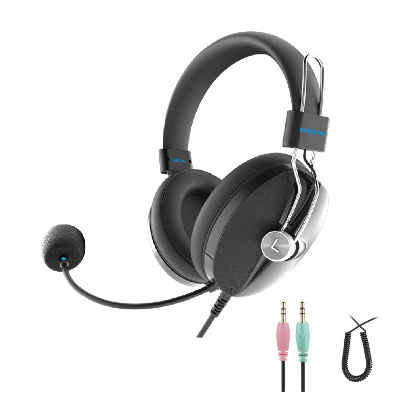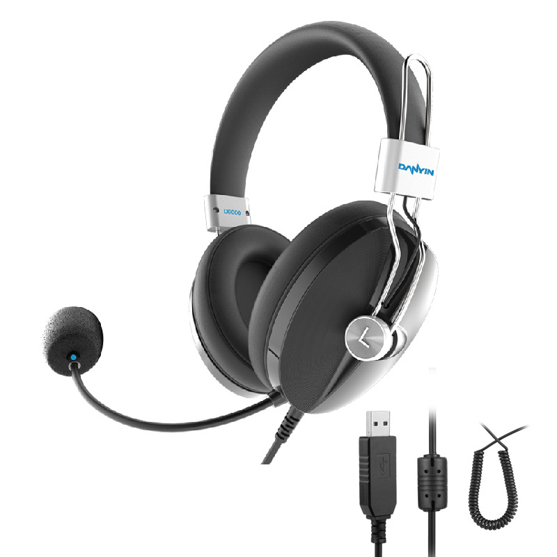 头戴式舒适电脑办公耳机弹簧线设计远程会务在线通话耳麦带话筒机