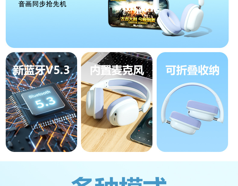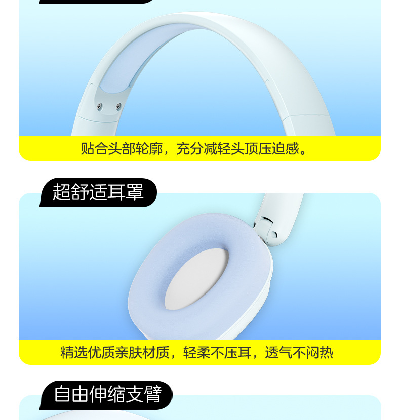 品牌: BYSOUL 传输范围: 10米 功能: 通话功能,语音控制,支持音乐 蓝牙协议: 5.3 使用方式: 头戴式 是否单双耳: 双边立体声 颜色: 白,黑,蓝,粉 主要下游平台: ebay,亚马逊,wish,速卖通,独立 主要销售地区: 非洲,欧洲,南美,东南亚,北美,东北亚, 有可授权的自有品牌: 是