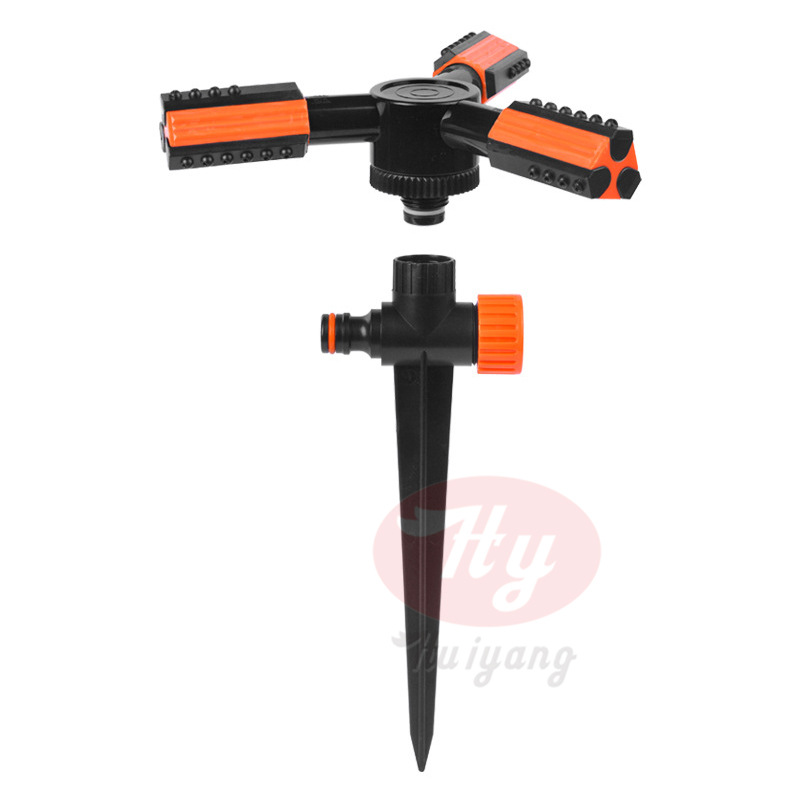 塑料ABS360度自动旋转地插喷头三叉洒水器园林草坪灌溉地插洒水器