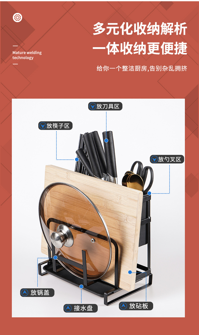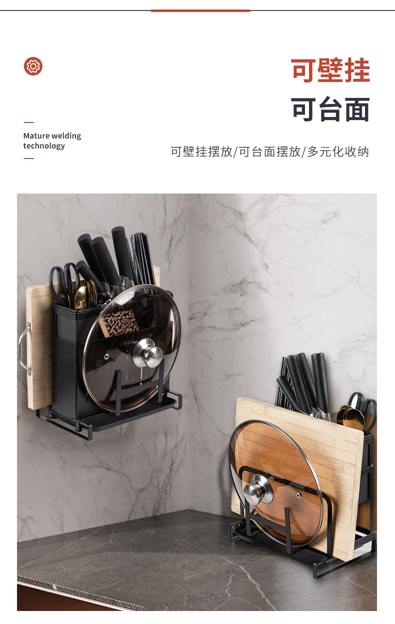 免安装一体刀架挂墙收纳整理刀架不锈钢多功能刀具砧板菜板架批发 English | 投诉