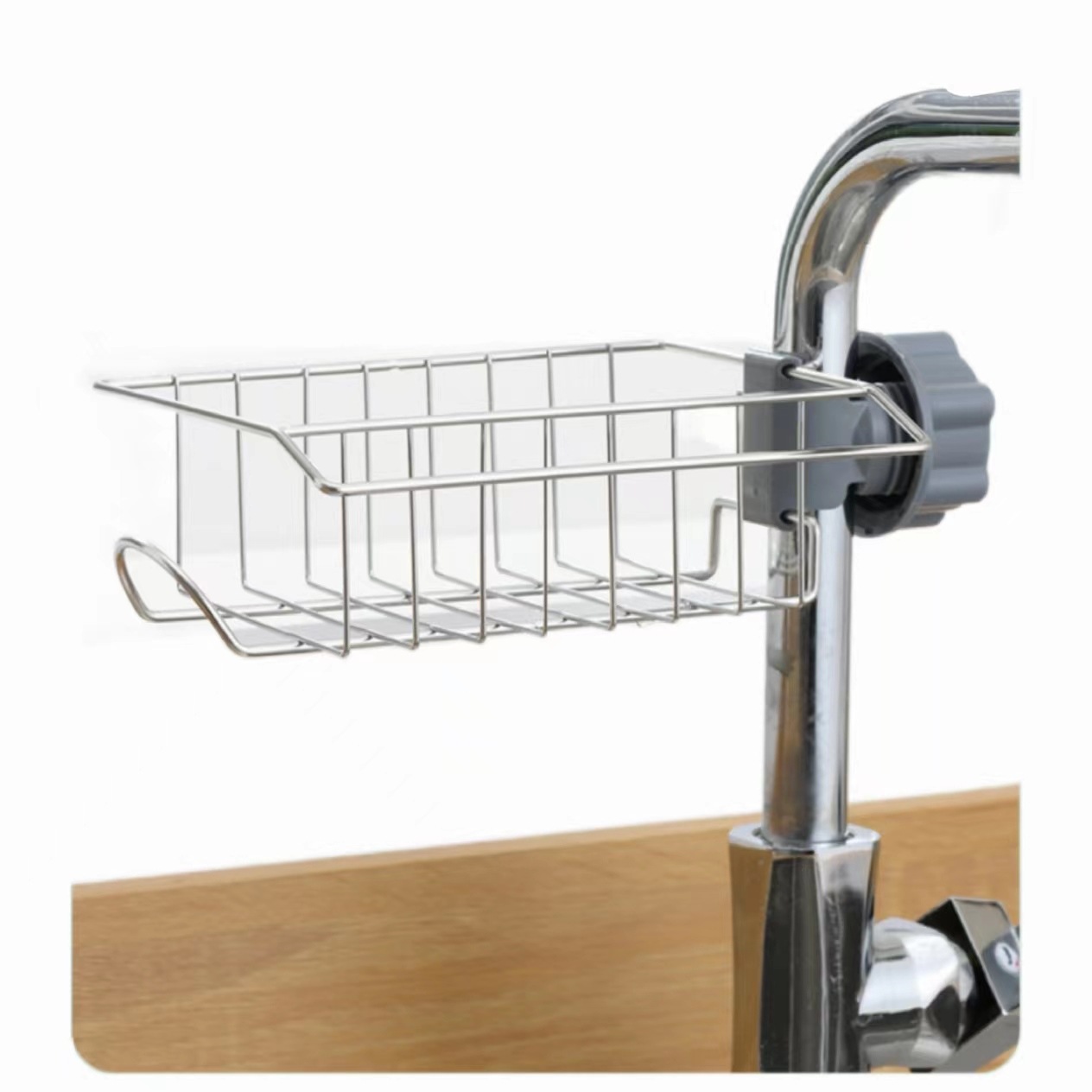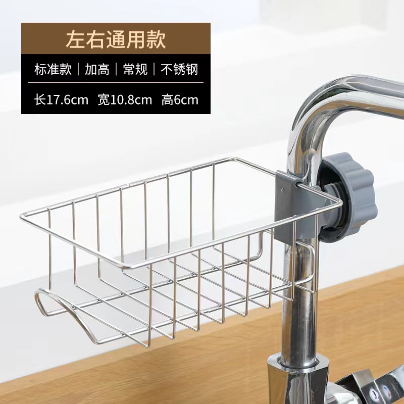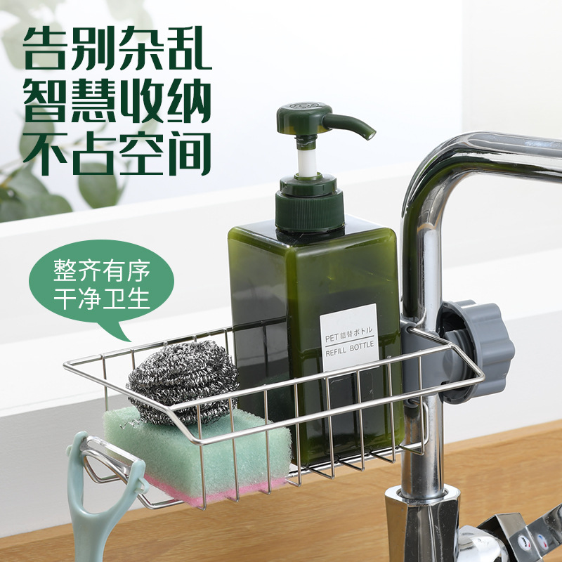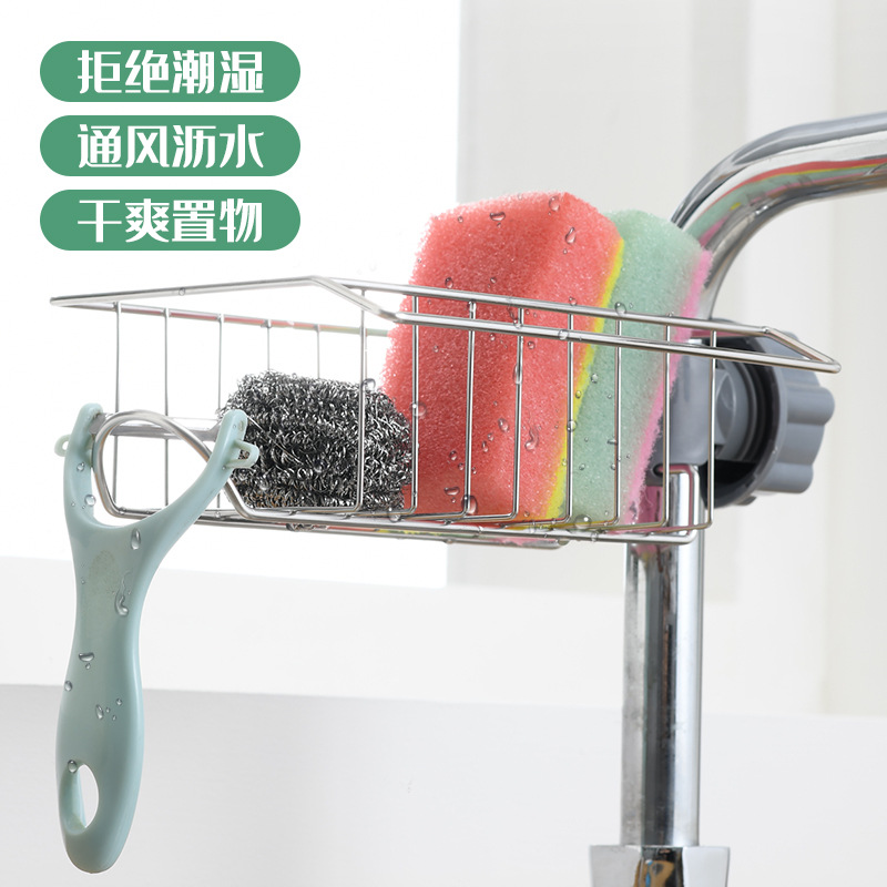 厨房水龙头置物架水槽架不锈钢抹布架海绵钢丝球洗碗沥水篮收纳架 English | 投诉