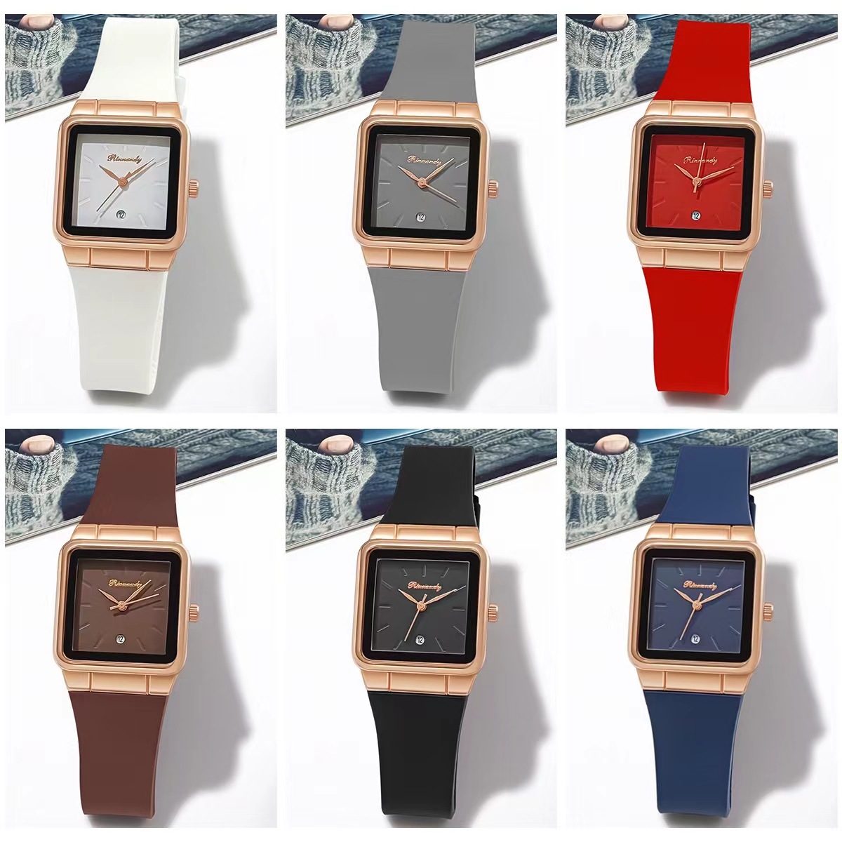 跨境外贸选款硅胶带女士日历手表方形刻度简约时尚石英表现货供应 投诉