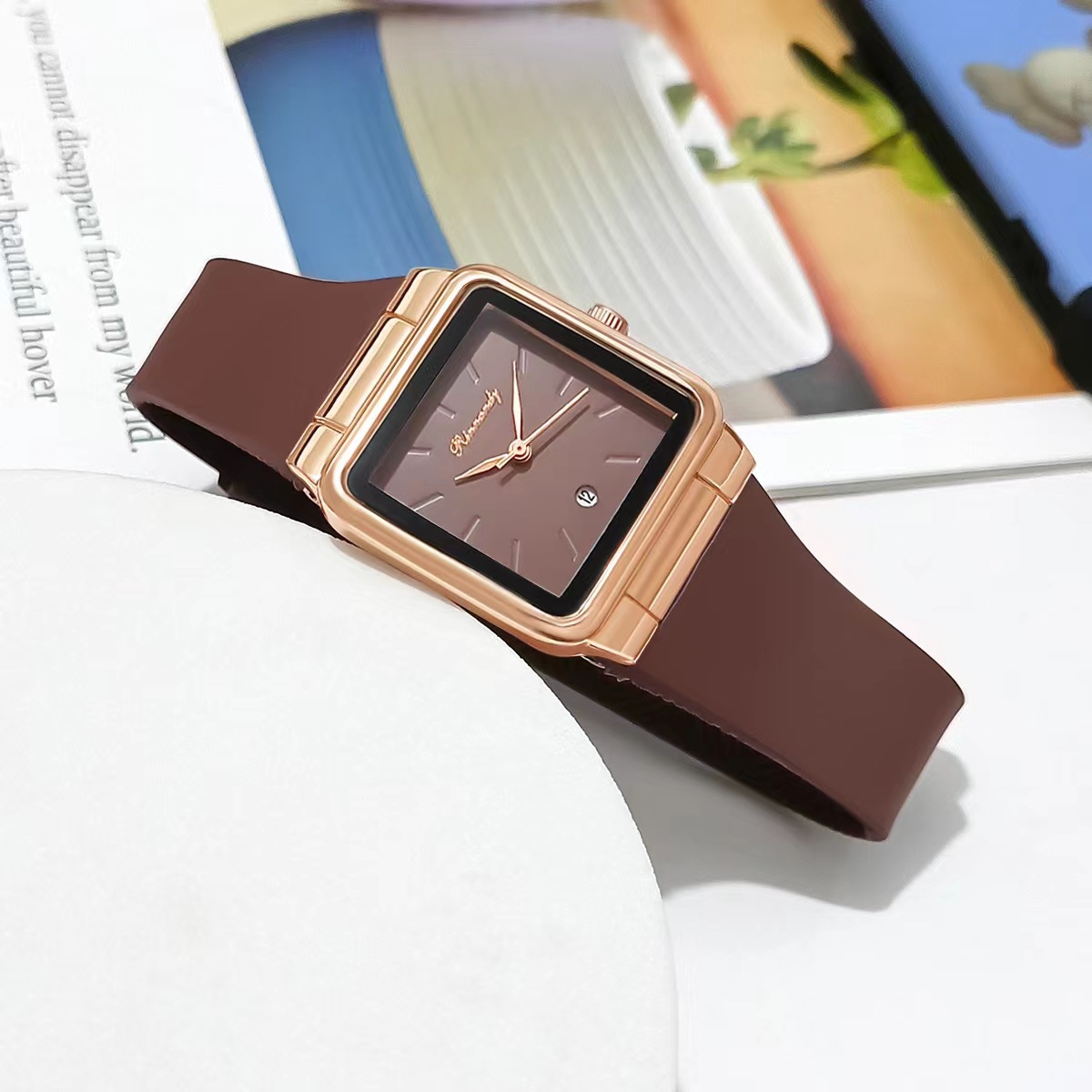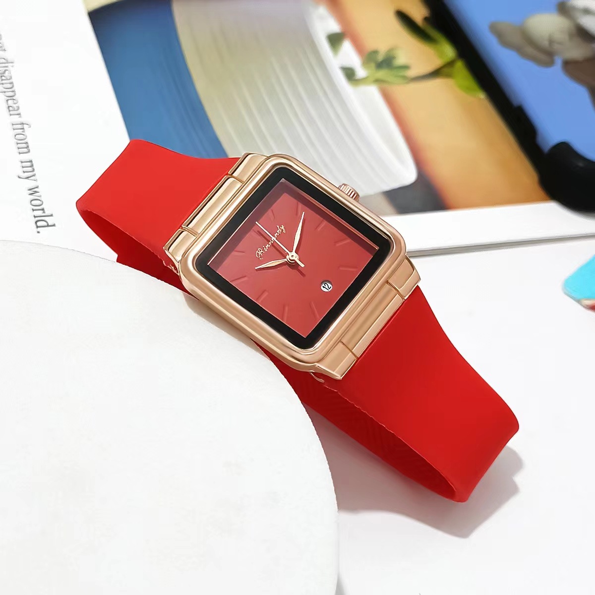 跨境外贸选款硅胶带女士日历手表方形刻度简约时尚石英表现货供应
