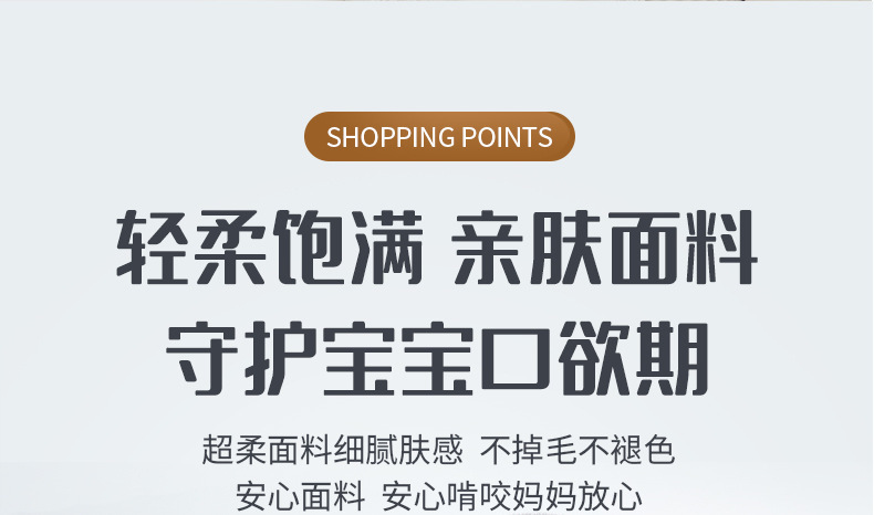 品牌: aipinqi 原产地: 中国 适用人群: 女孩,男孩 是否进口: 国产 包装: 礼盒 能力培养: 情感,视觉,爬行,抓握,感官,手眼协调, 货号: N063 是否有导购视频: 是 是否专供外贸: 否 3C配置类别: 14岁以下的毛绒玩具 重量: 0.3 kg/个