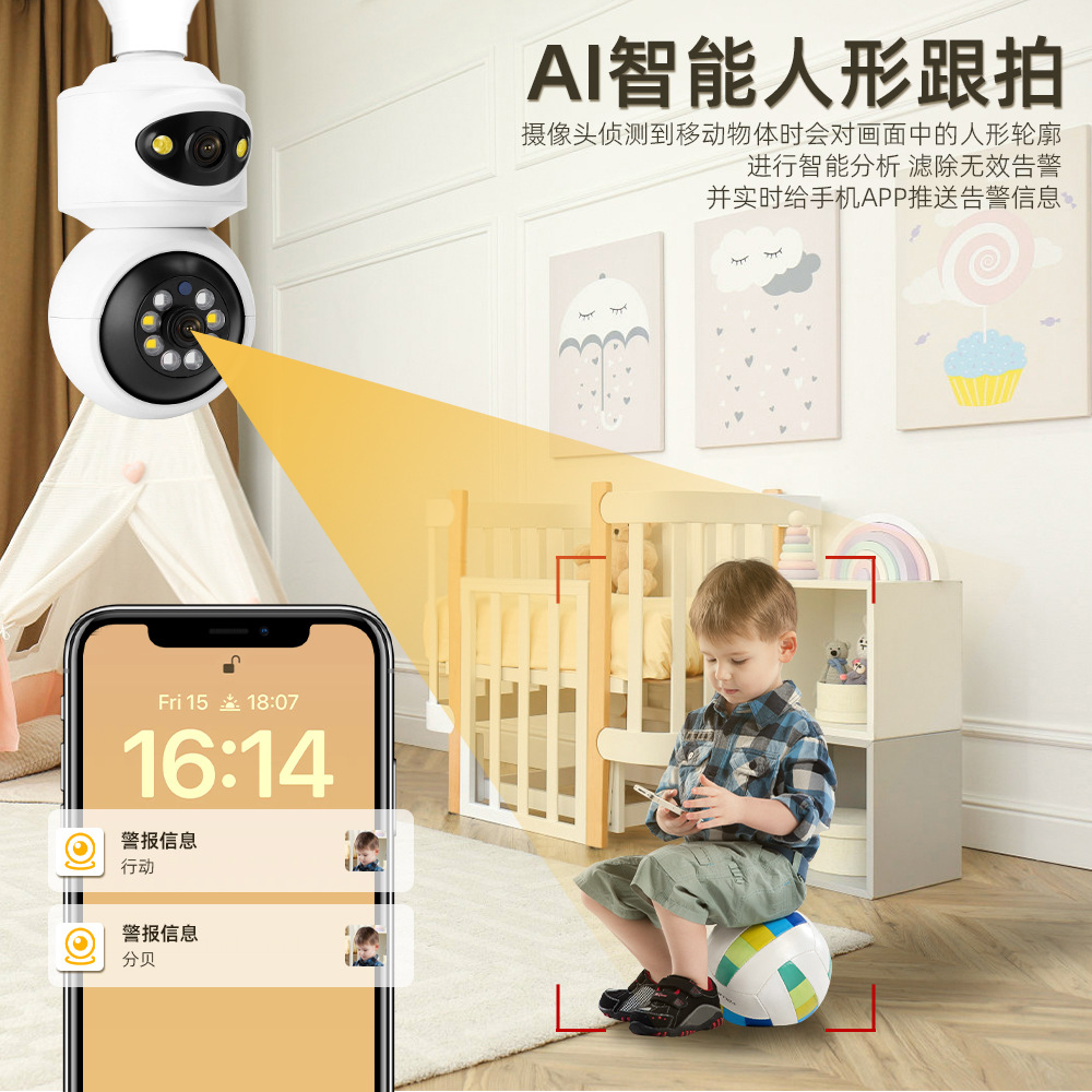 双目全彩智能双向对讲室内小球机智能网络监控器摄像机F3-17162