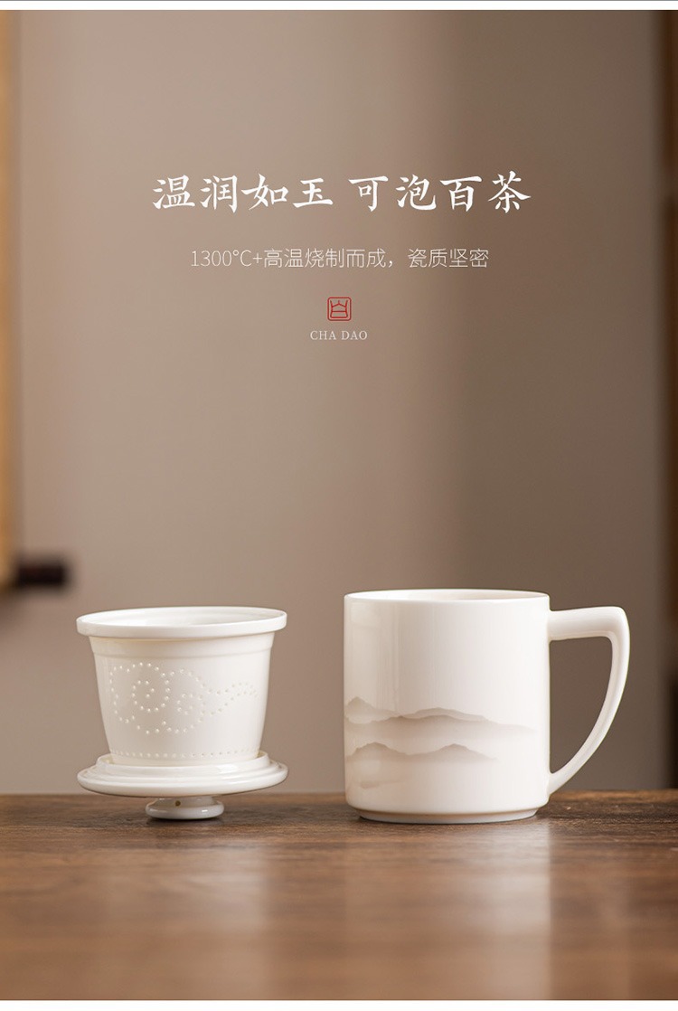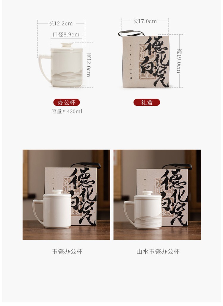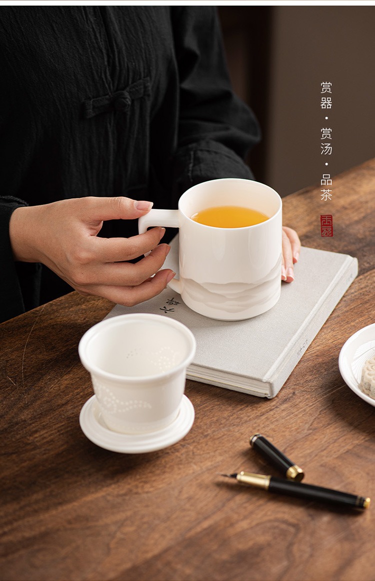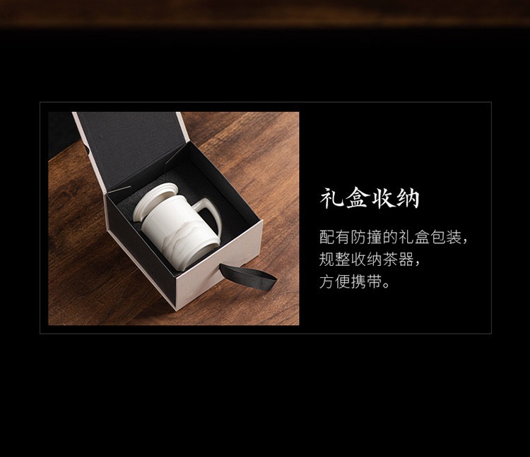 德化羊脂玉茶杯个人专用办公杯陶瓷礼盒茶水分离马克杯过滤定logo 投诉