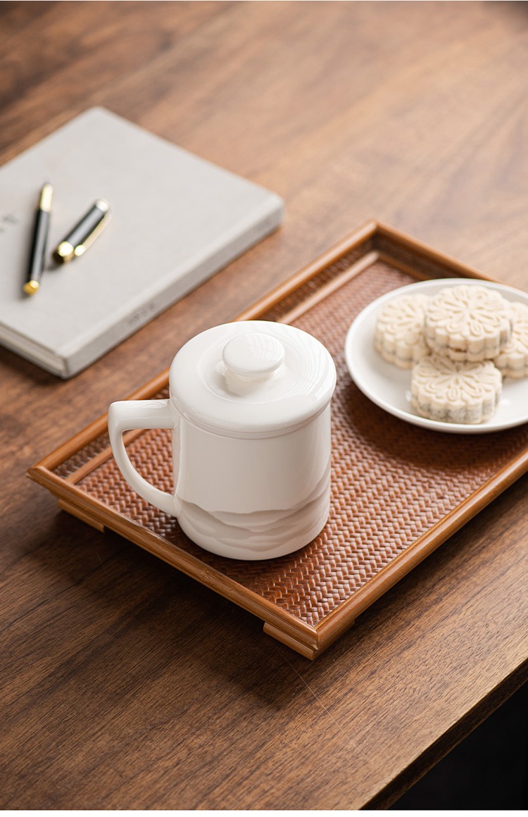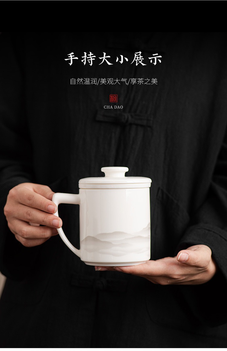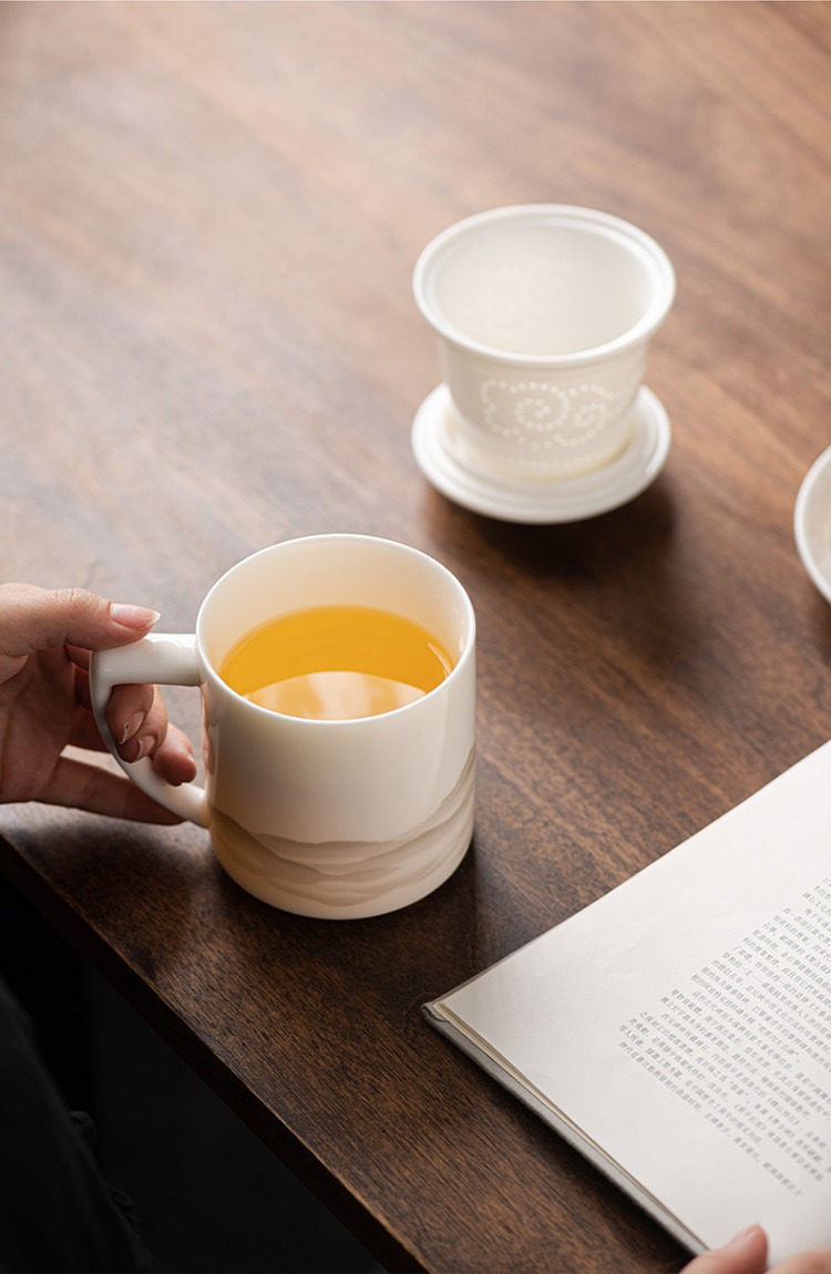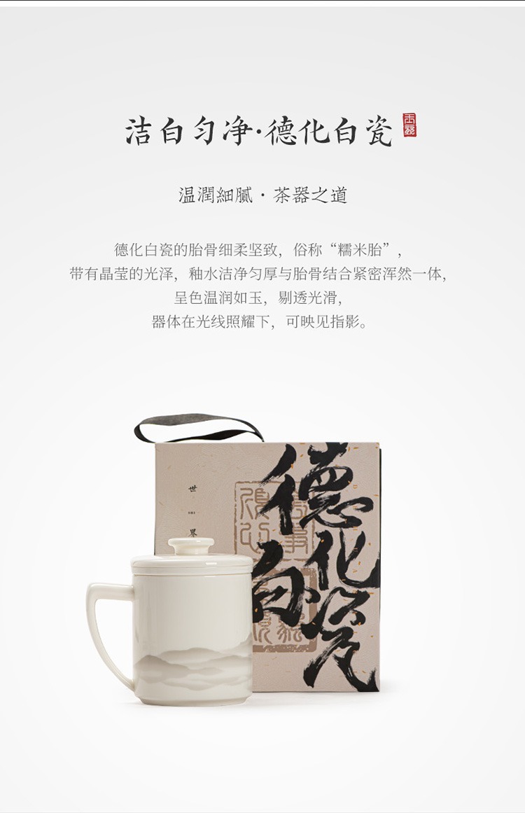 德化羊脂玉茶杯个人专用办公杯陶瓷礼盒茶水分离马克杯过滤定logo 投诉