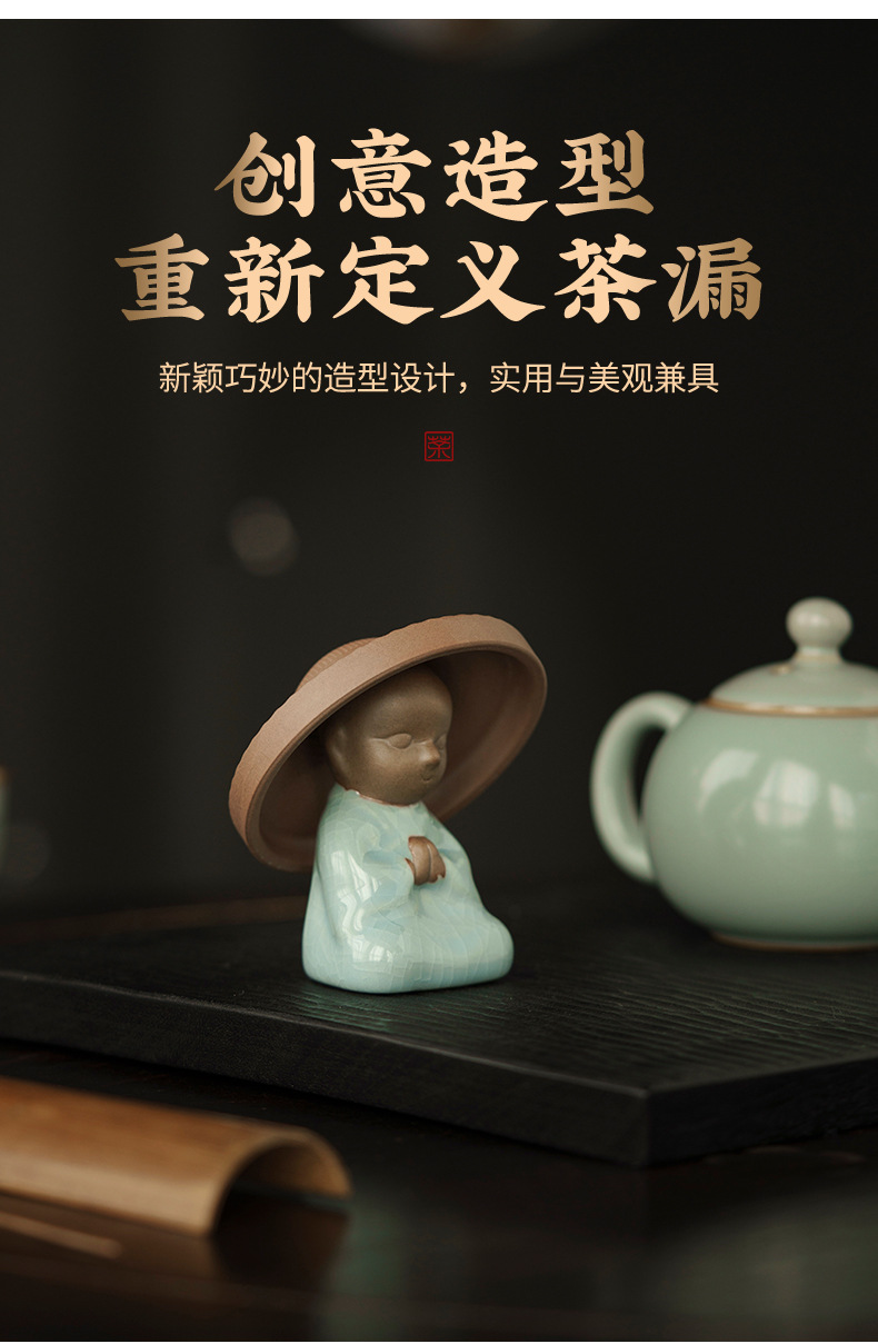 创意陶瓷茶漏茶滤茶宠茶叶过滤网小和尚茶具滤茶网过滤禅意 直播 投诉