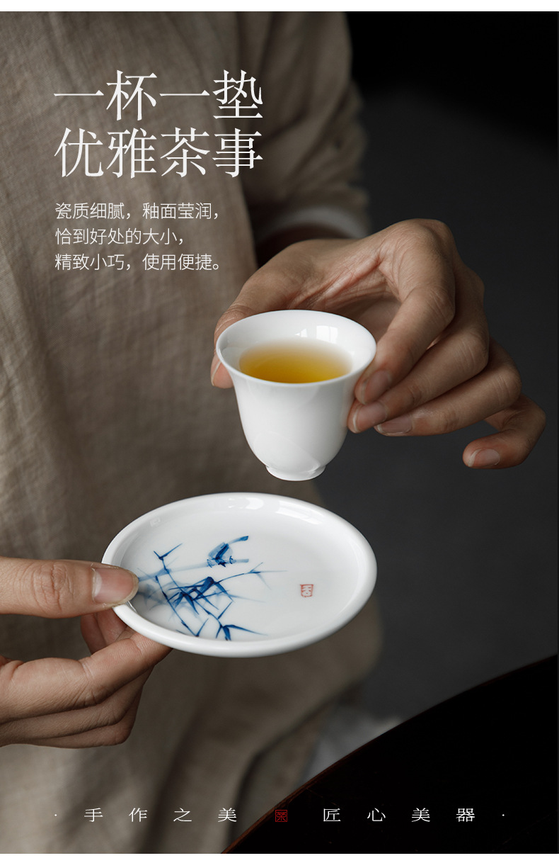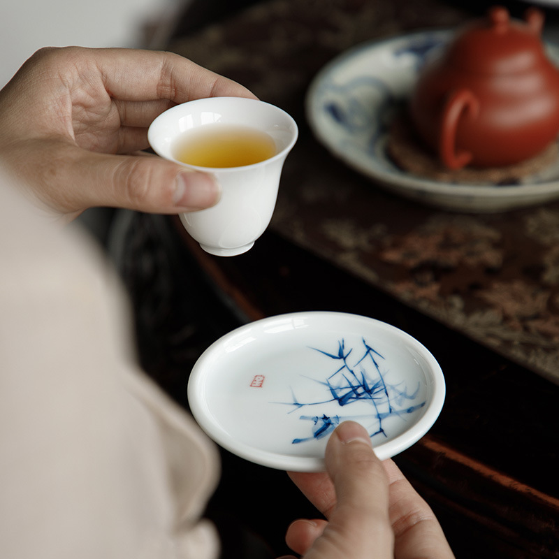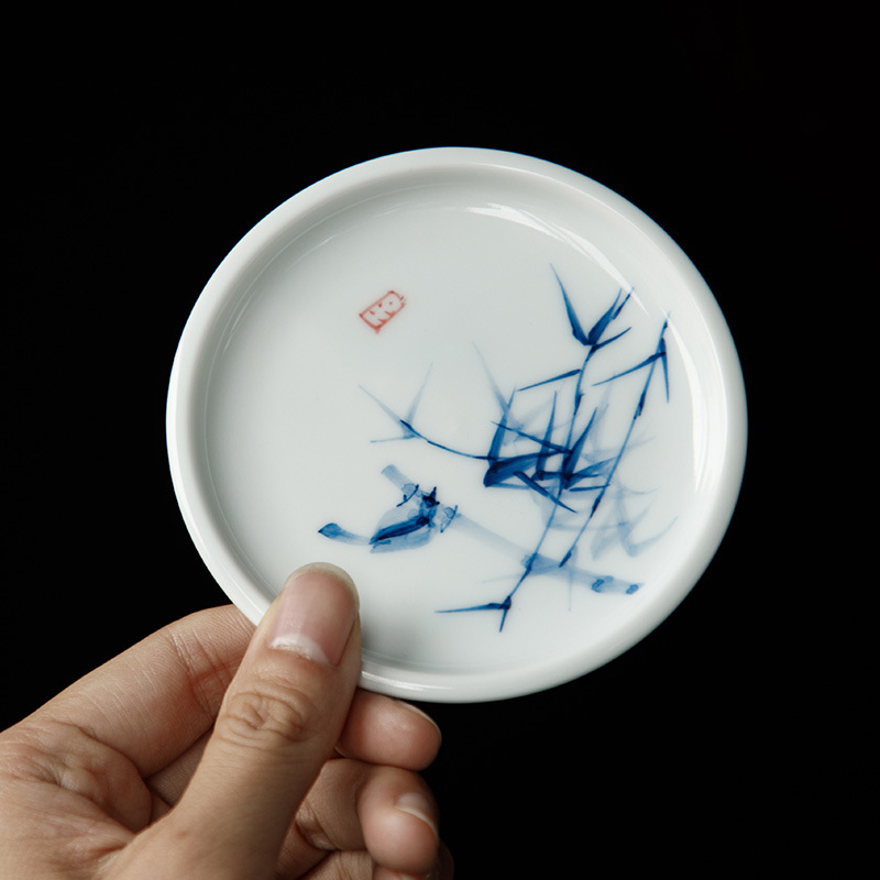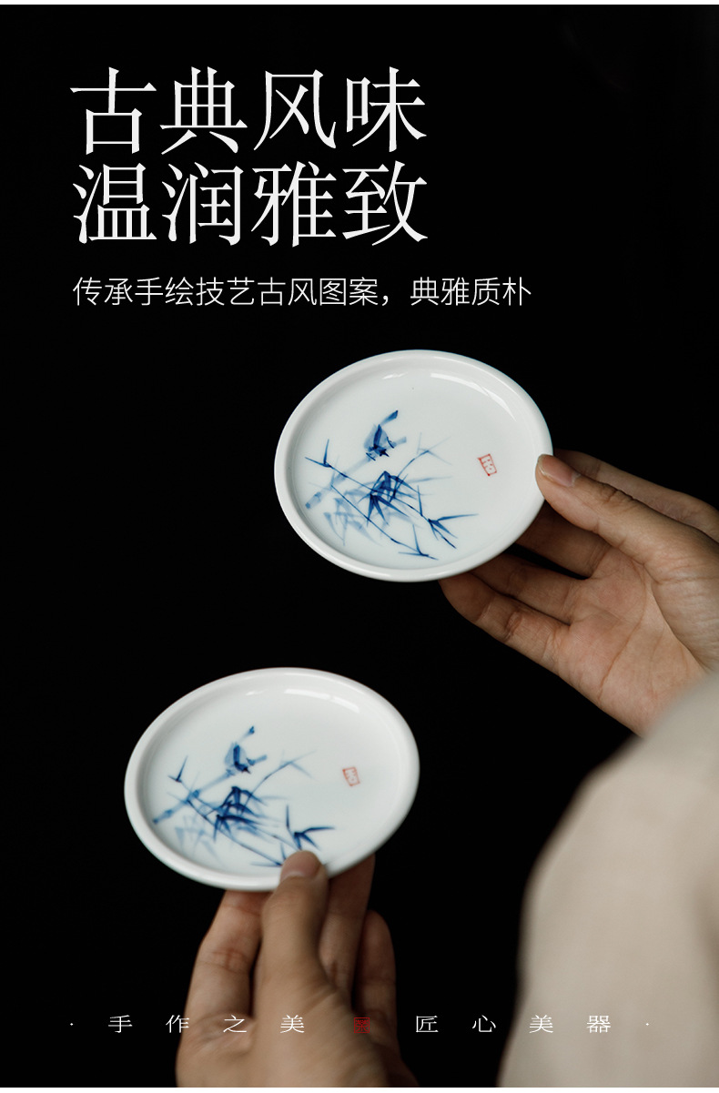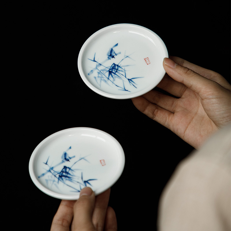 手绘青花杯垫仿古茶杯垫新中式防烫茶桌垫茶道配件竹子茶艺文人器