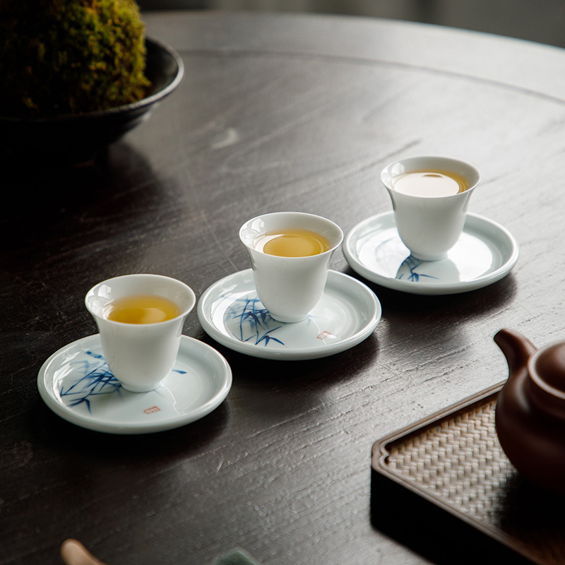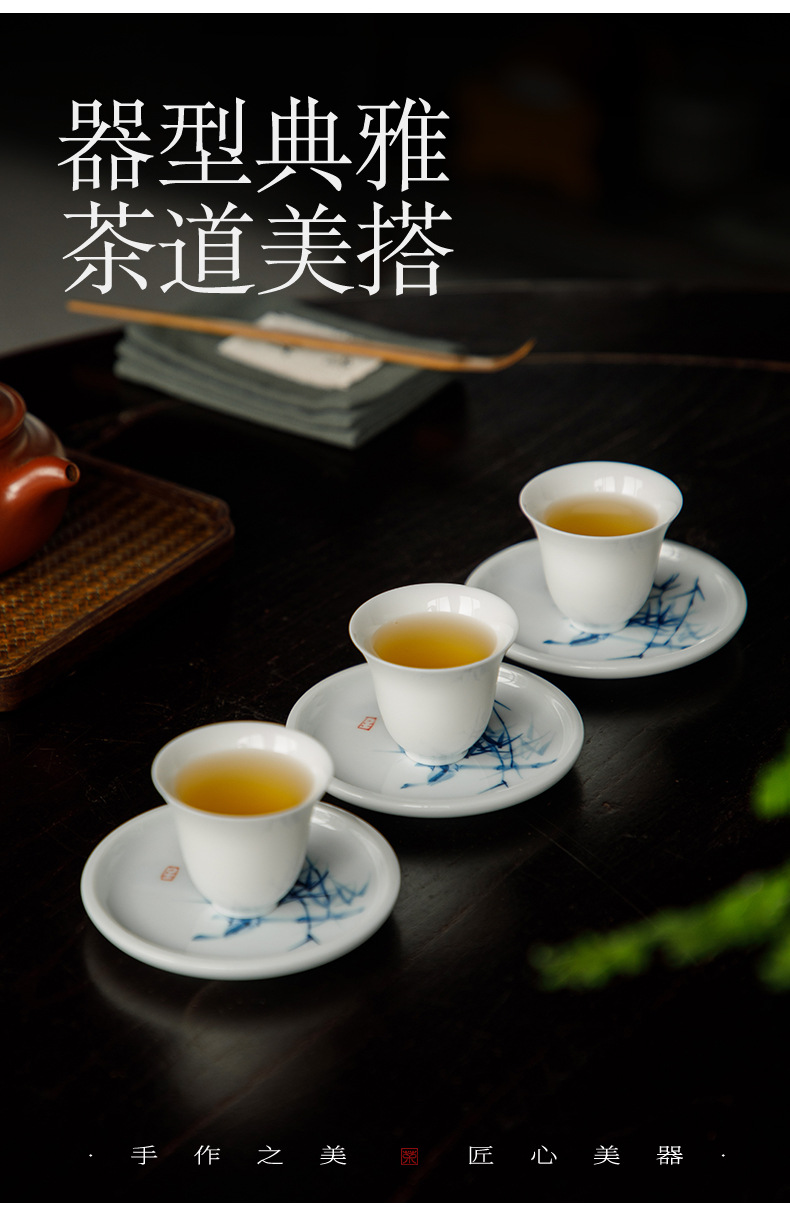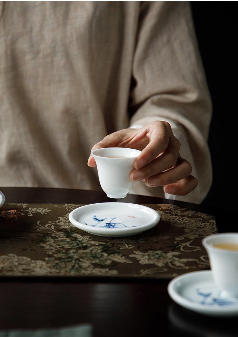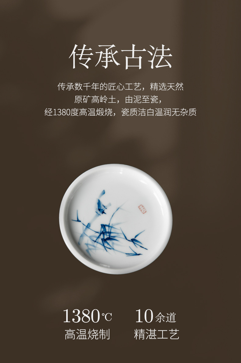 手绘青花杯垫仿古茶杯垫新中式防烫茶桌垫茶道配件竹子茶艺文人器
