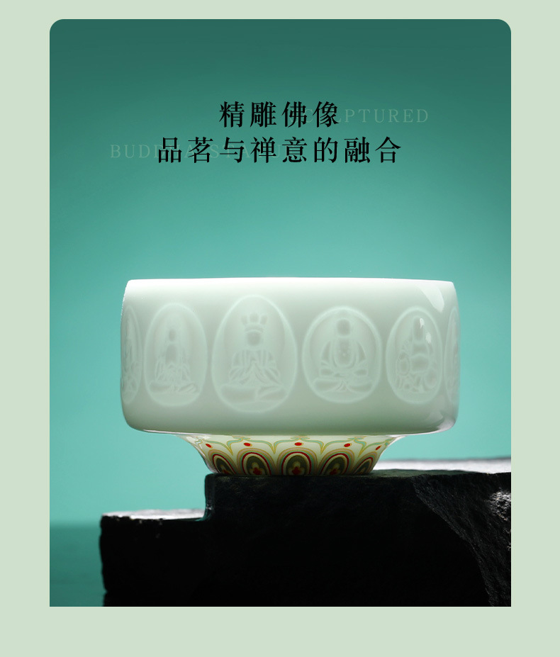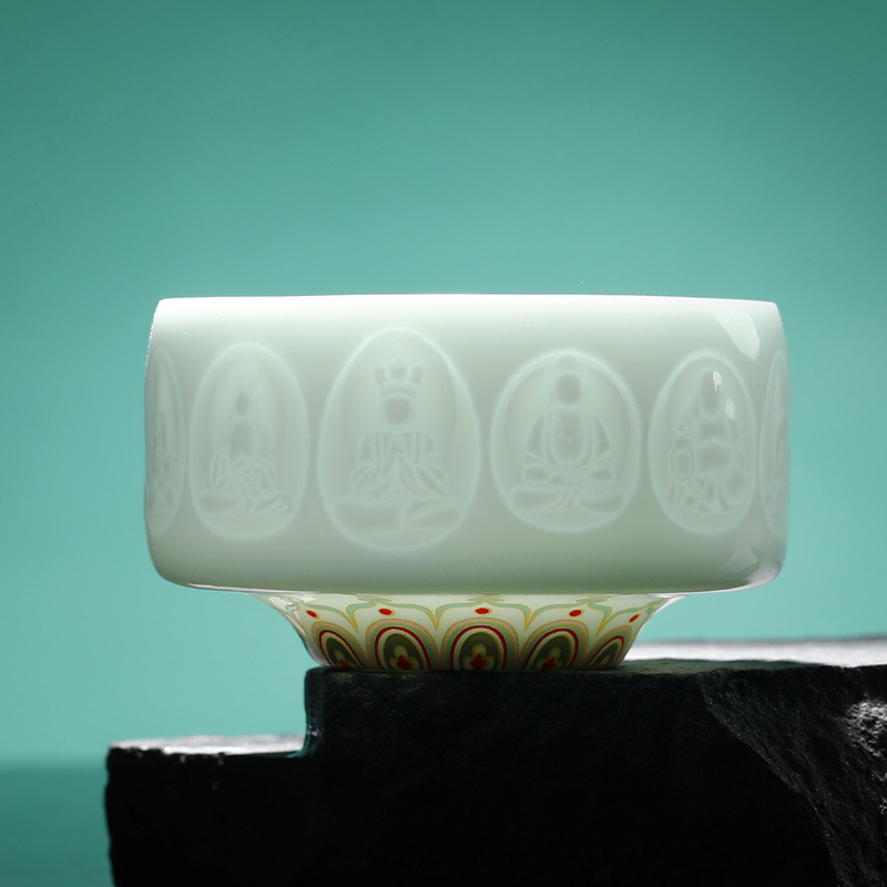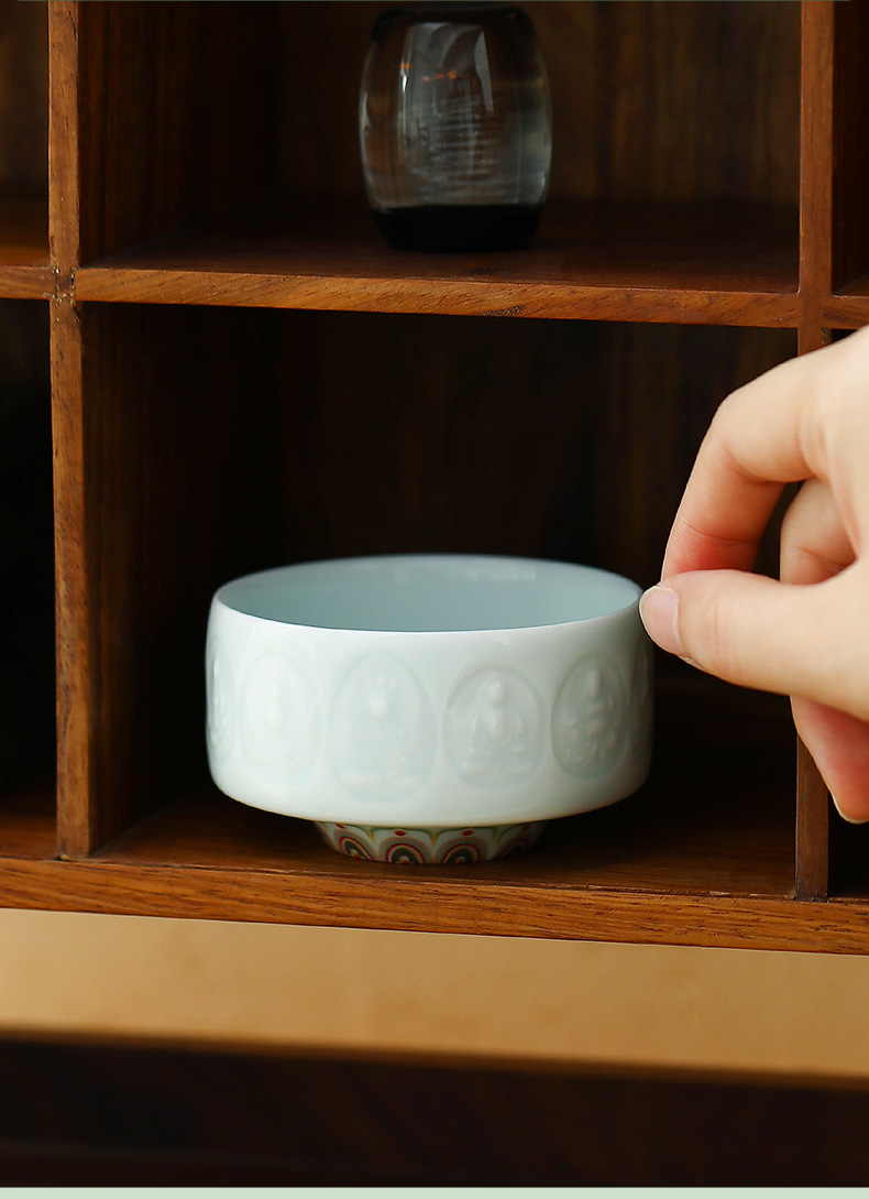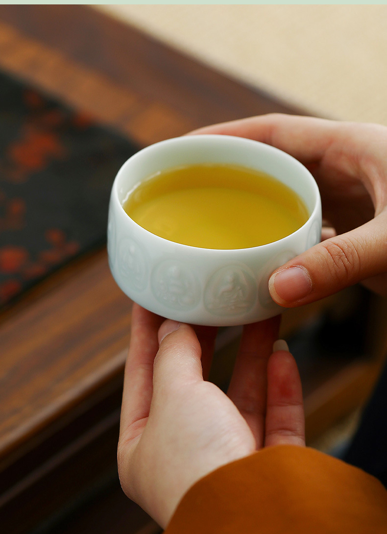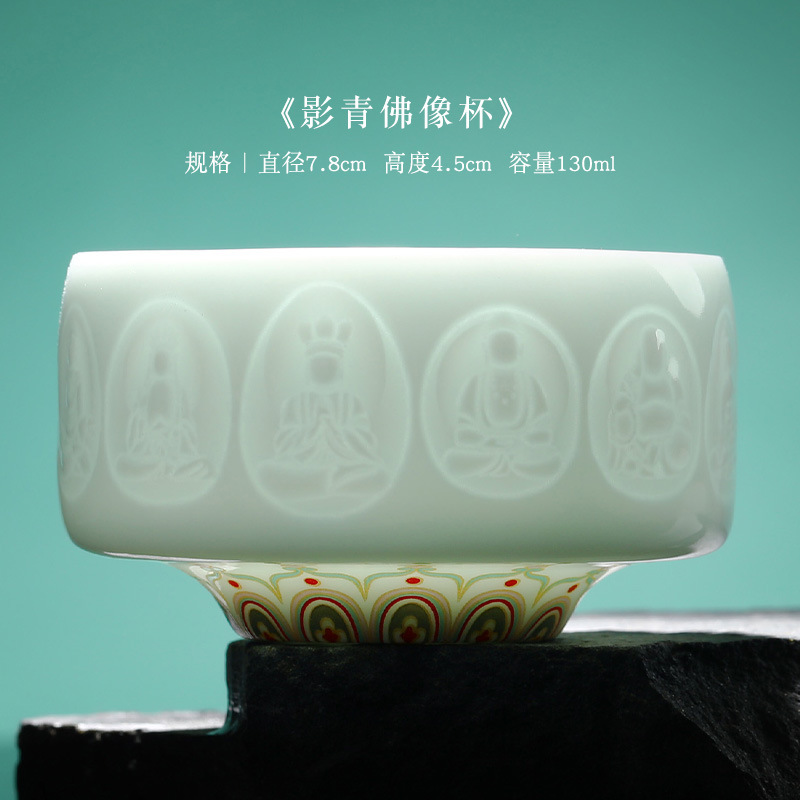 敦煌影青雕刻陶瓷茶杯主人杯个人杯品茗杯龙泉青瓷礼盒装伴手礼