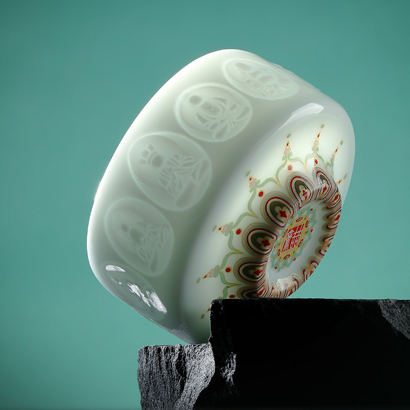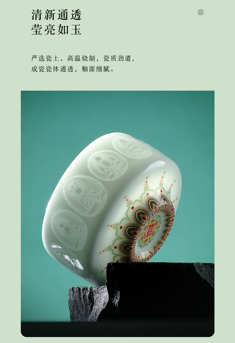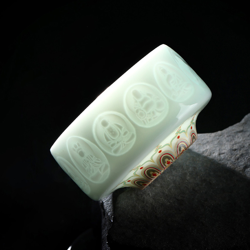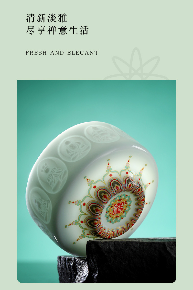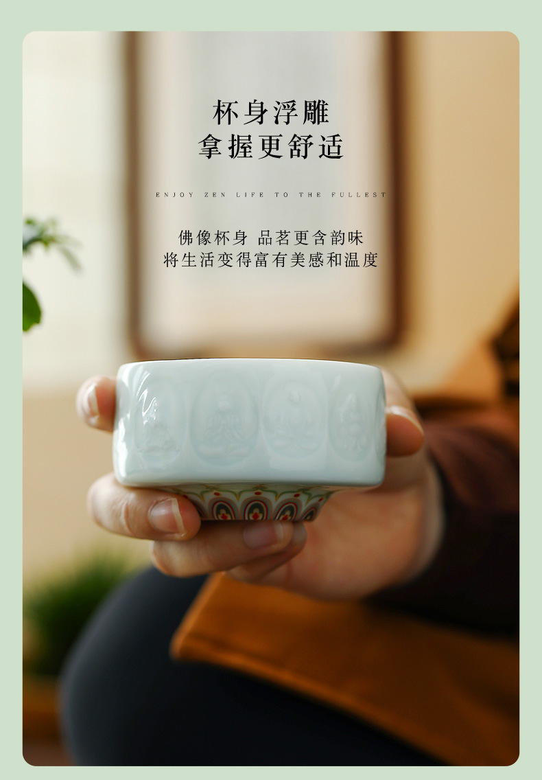 敦煌影青雕刻陶瓷茶杯主人杯个人杯品茗杯龙泉青瓷礼盒装伴手礼