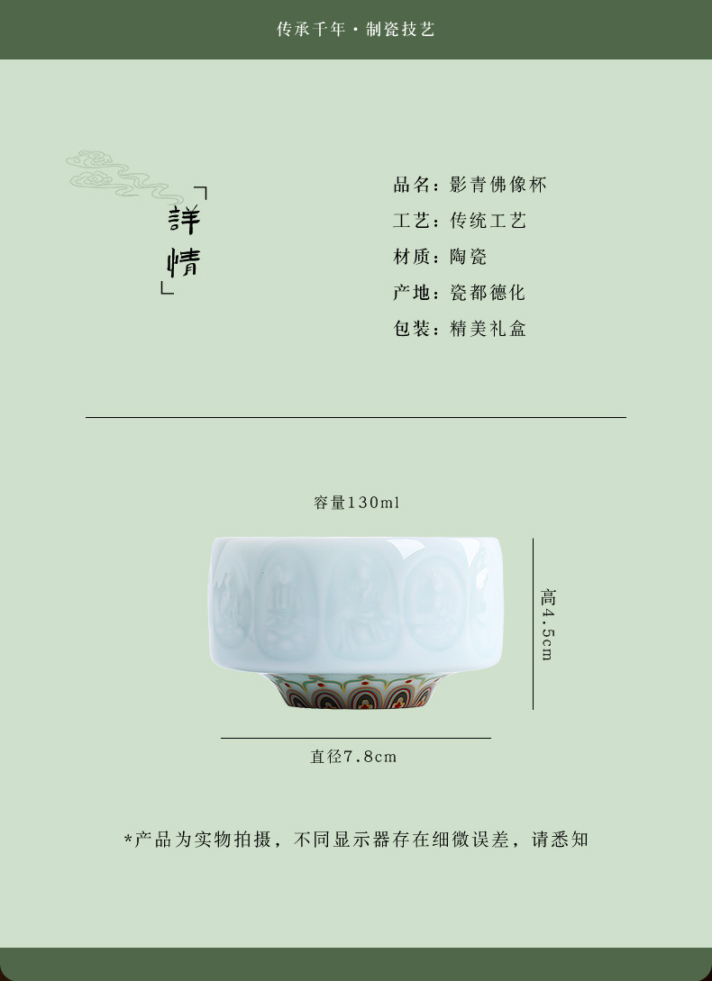 敦煌影青雕刻陶瓷茶杯主人杯个人杯品茗杯龙泉青瓷礼盒装伴手礼 投诉