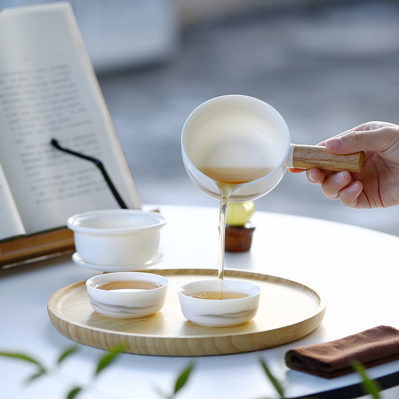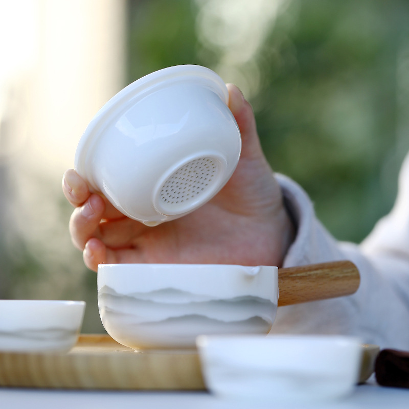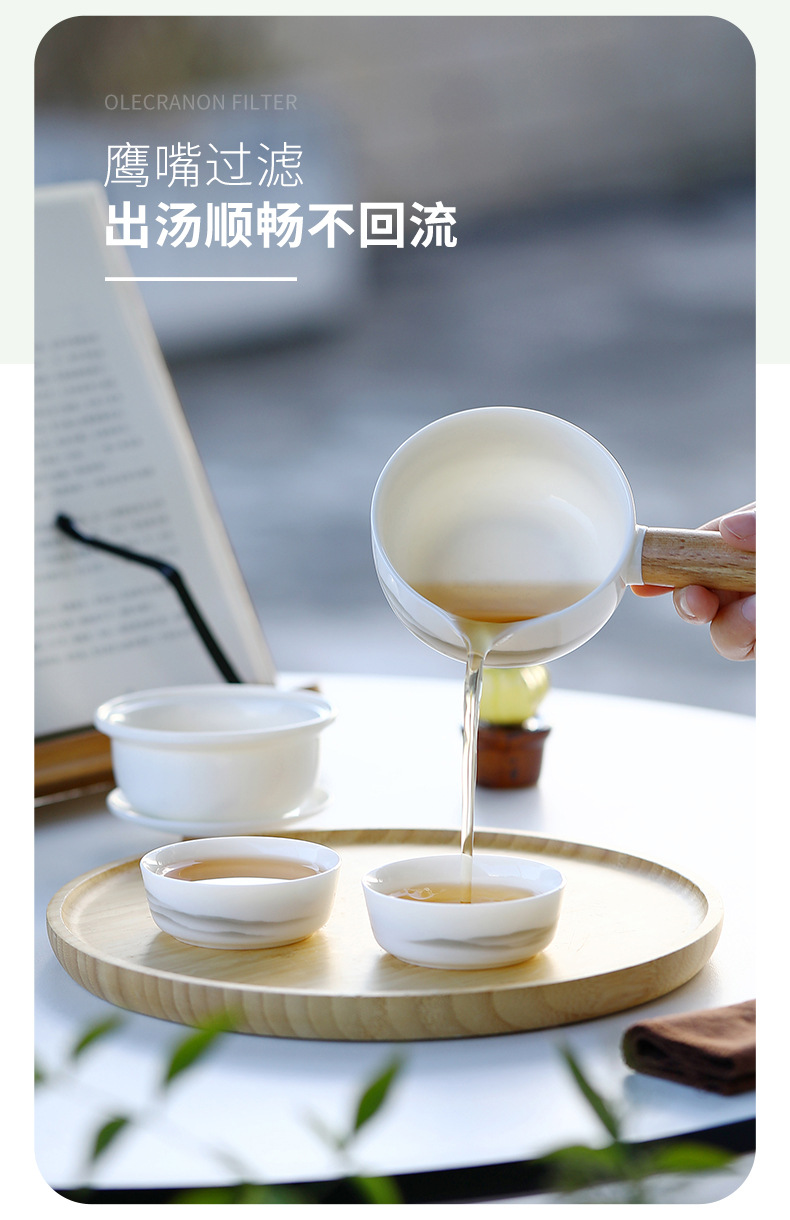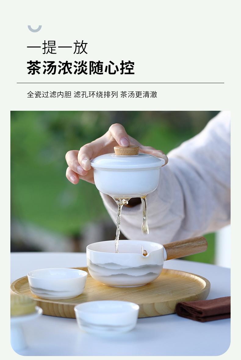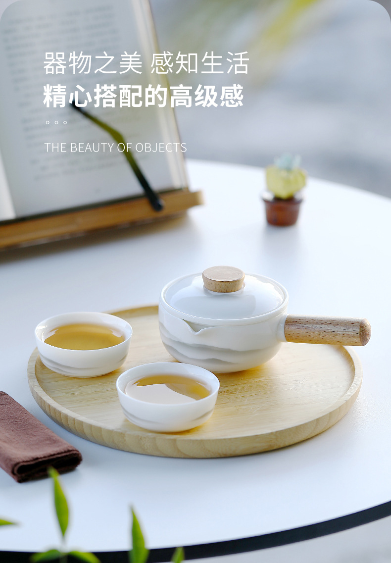 德化白瓷羊脂玉侧把壶一壶两杯远山旅行茶具快客杯便携式定logo 投诉