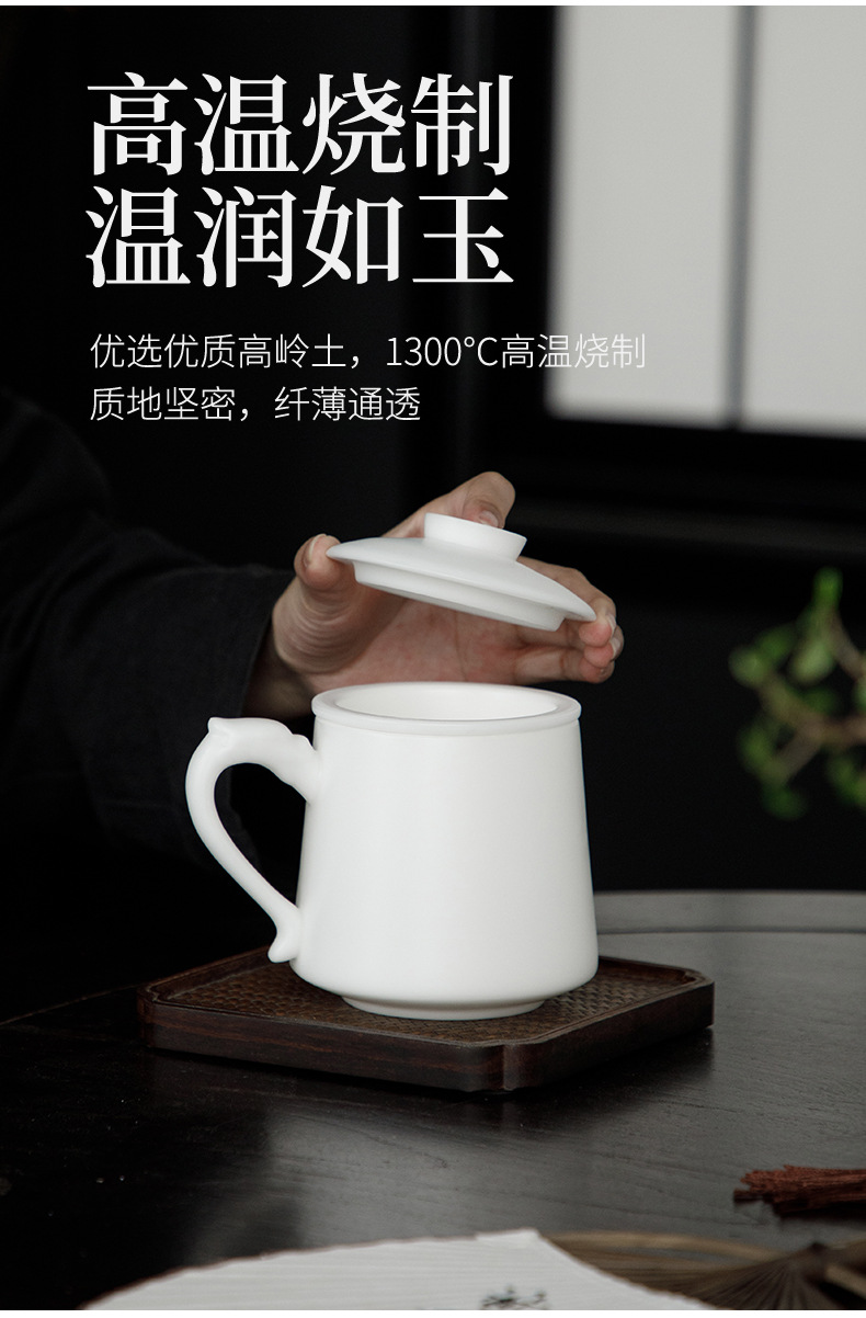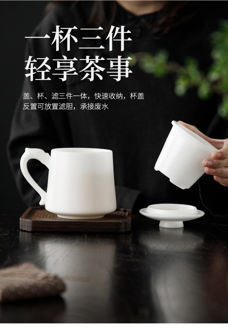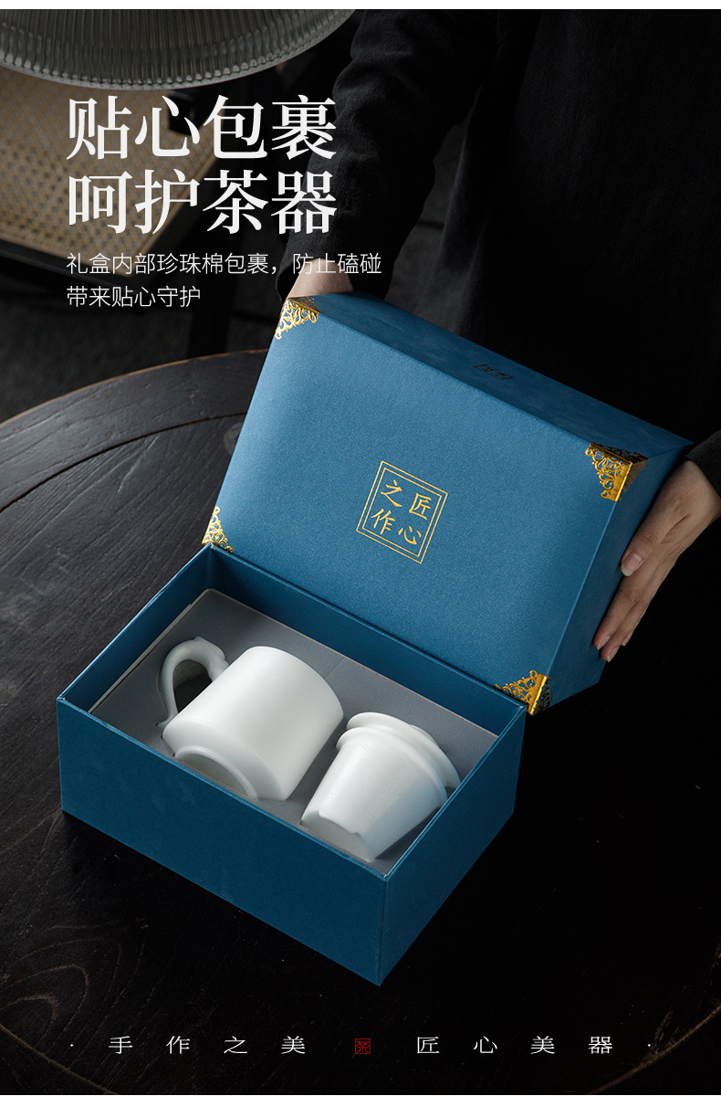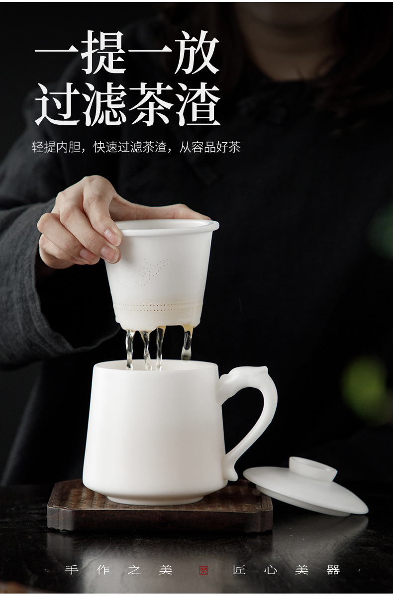 冰种玉瓷办公杯德化白瓷茶水分离泡茶杯带盖过滤商务礼品定logo 投诉