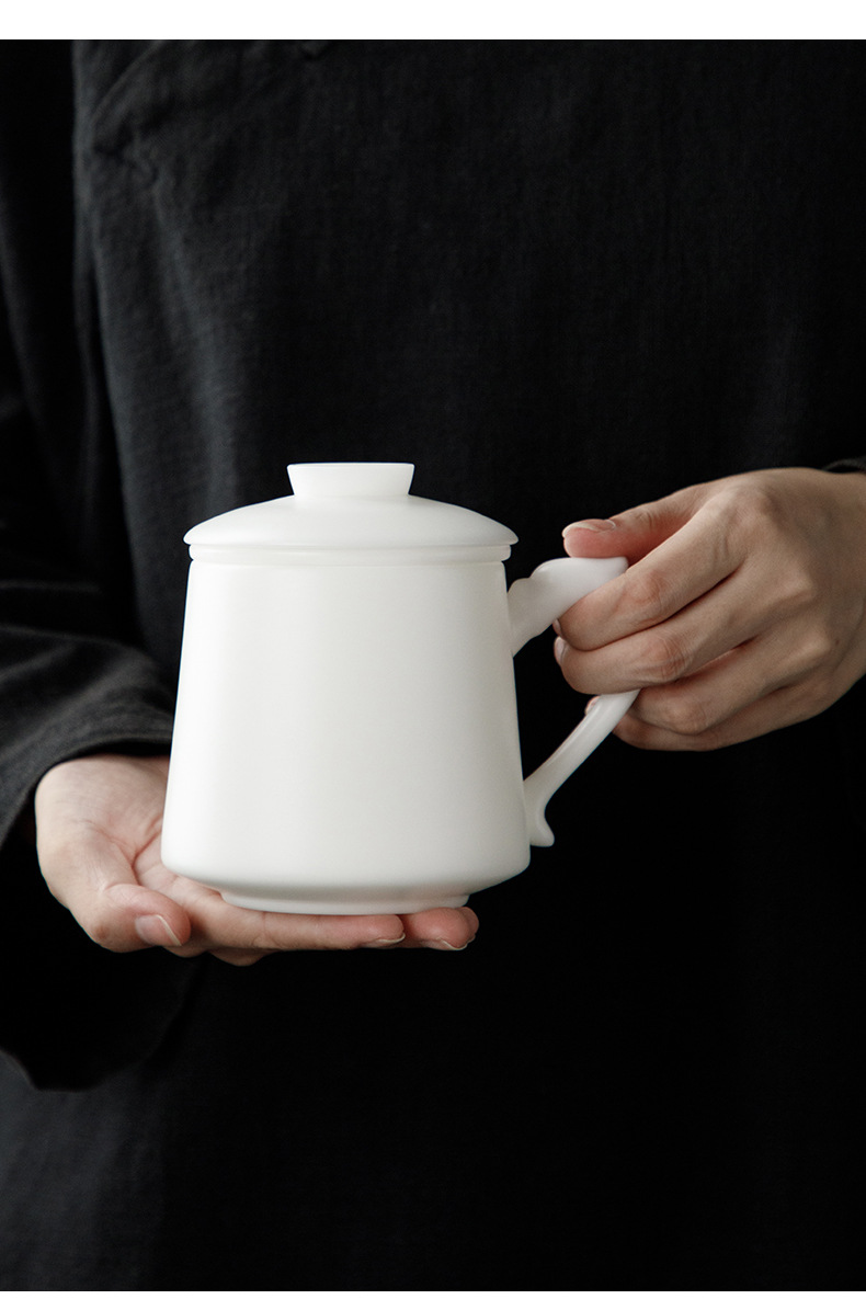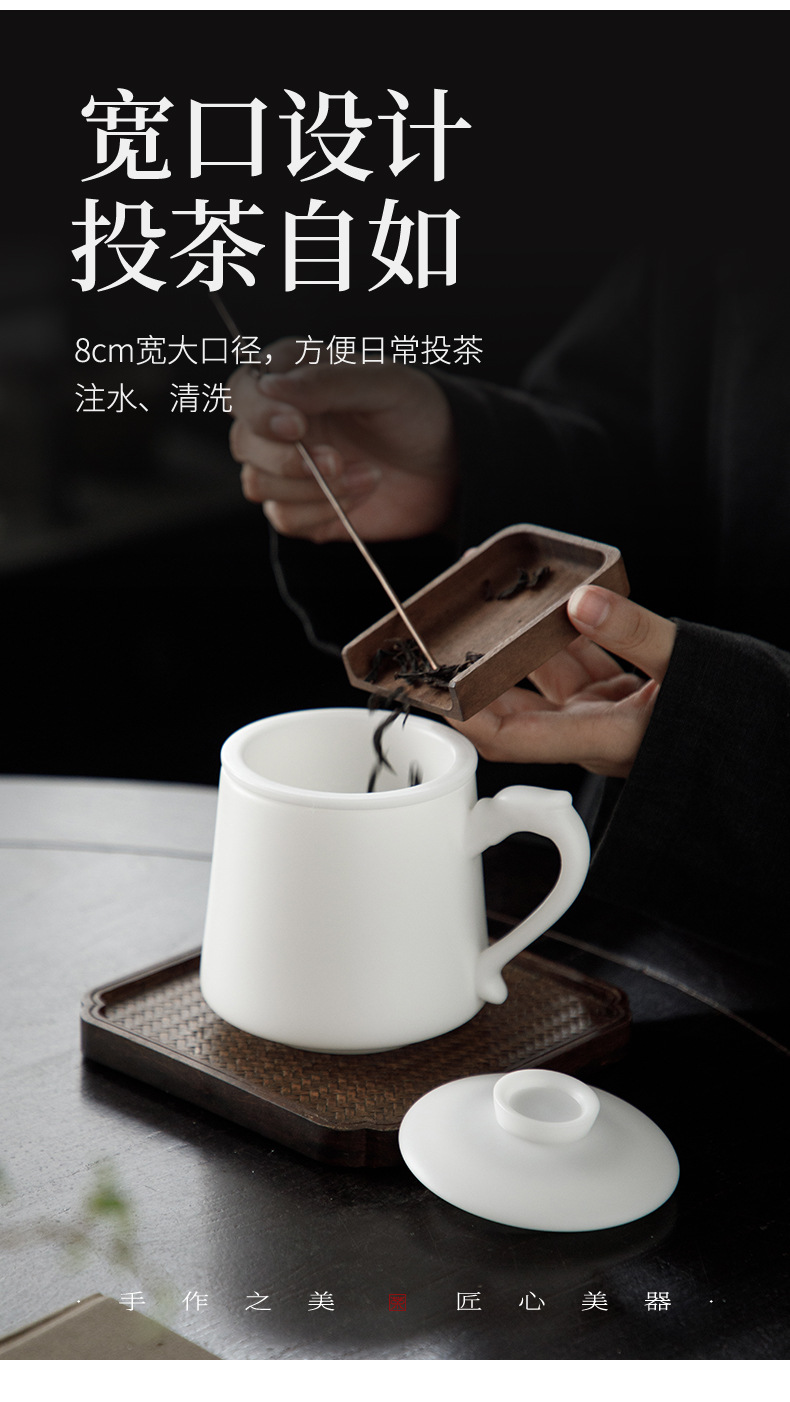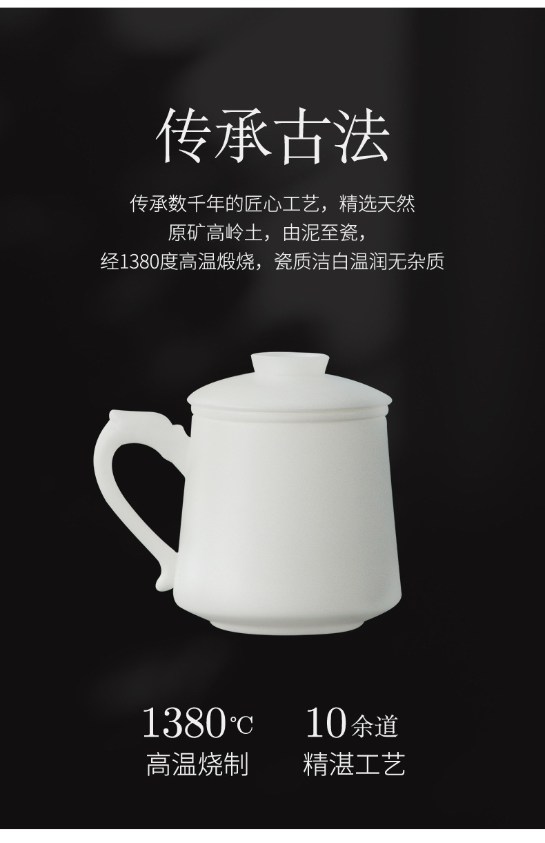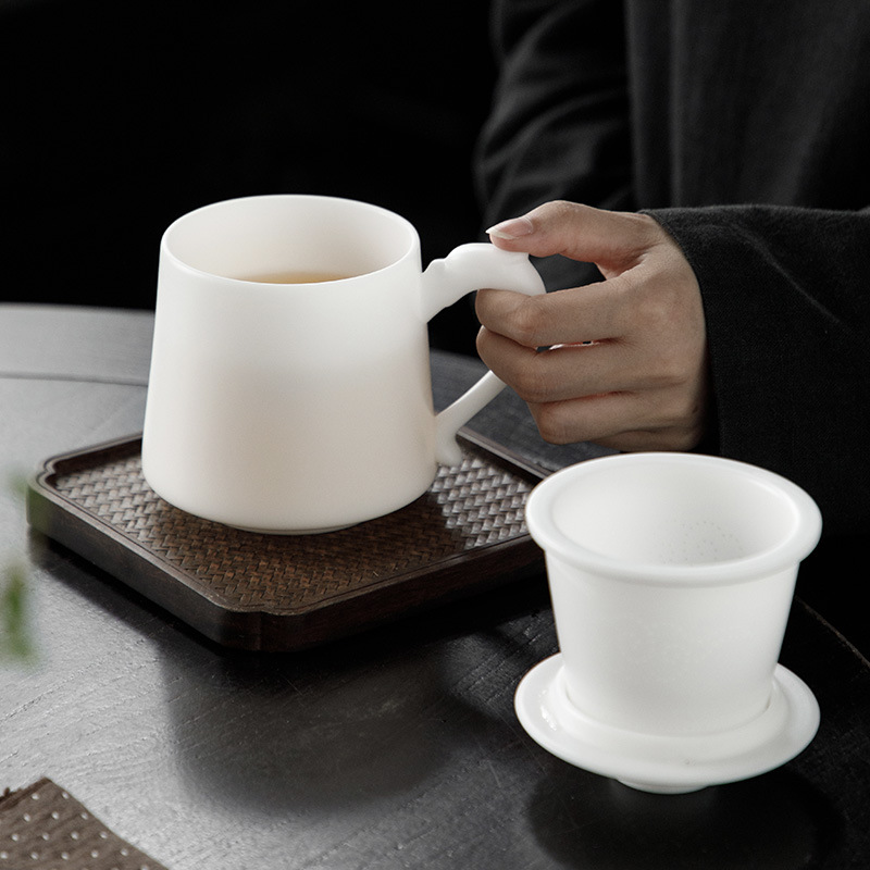 冰种玉瓷办公杯德化白瓷茶水分离泡茶杯带盖过滤商务礼品定logo 投诉