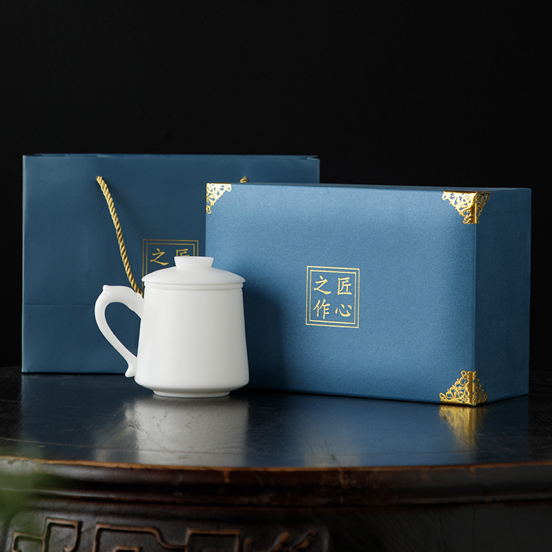 冰种玉瓷办公杯德化白瓷茶水分离泡茶杯带盖过滤商务礼品定logo