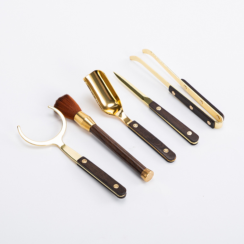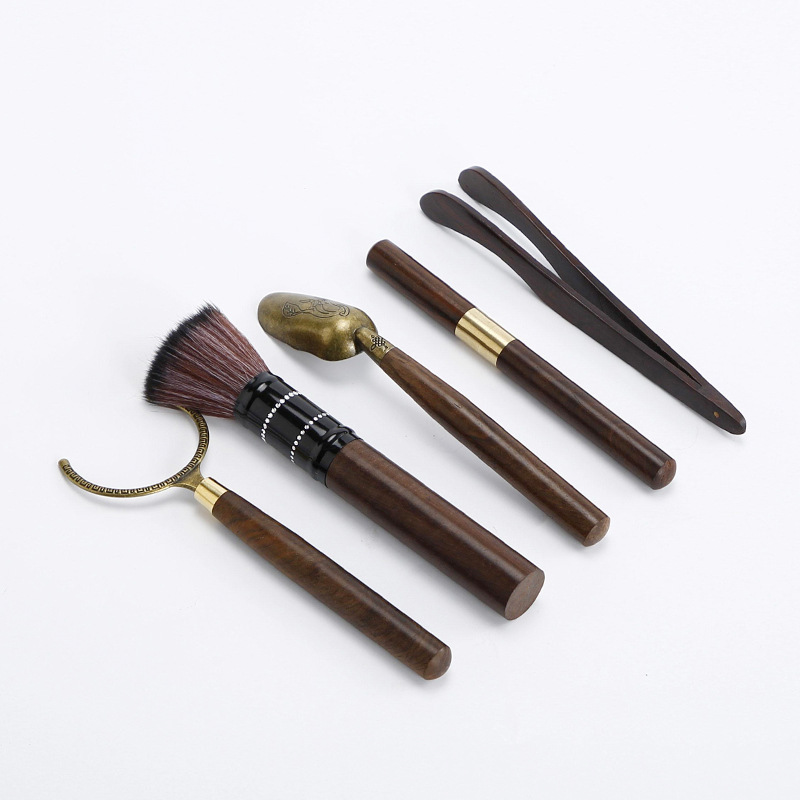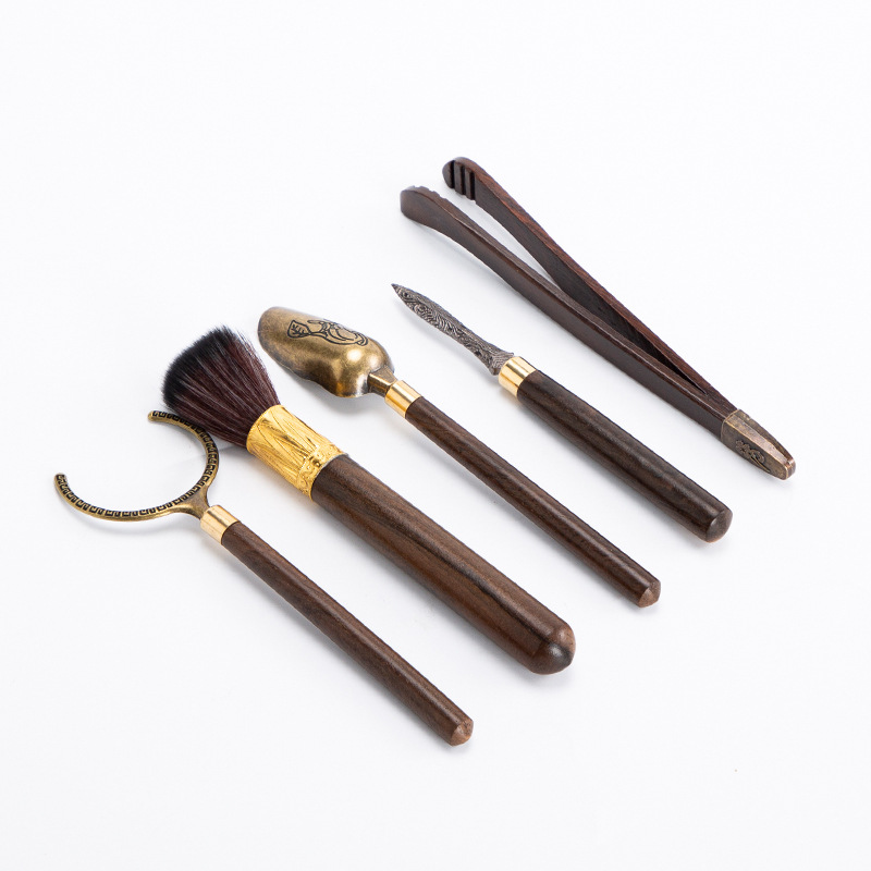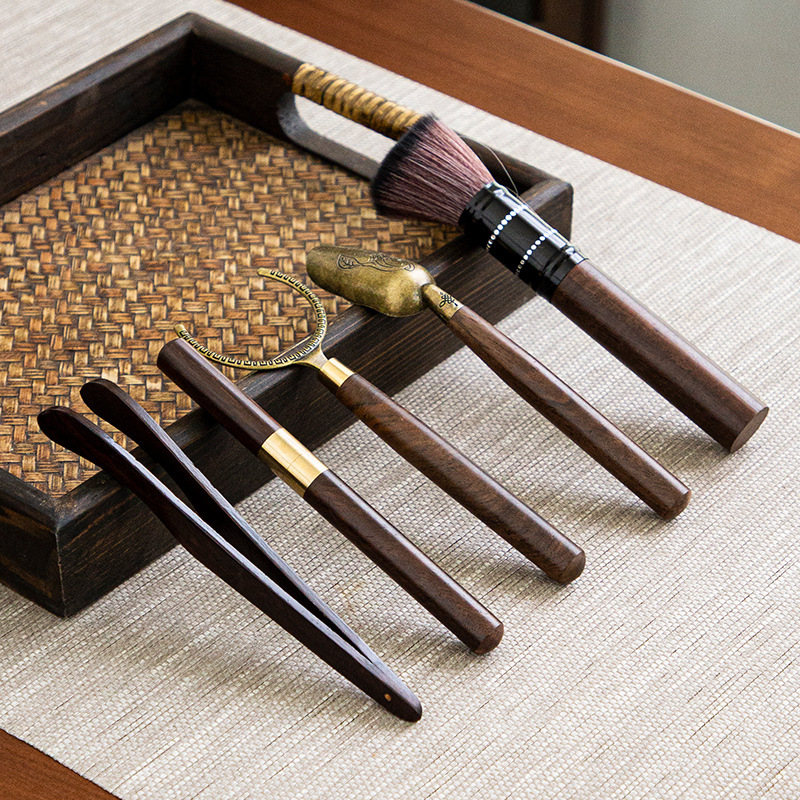 黑檀木六君子套装黄铜6君子功夫茶具茶道茶艺配件茶夹茶勺茶刀