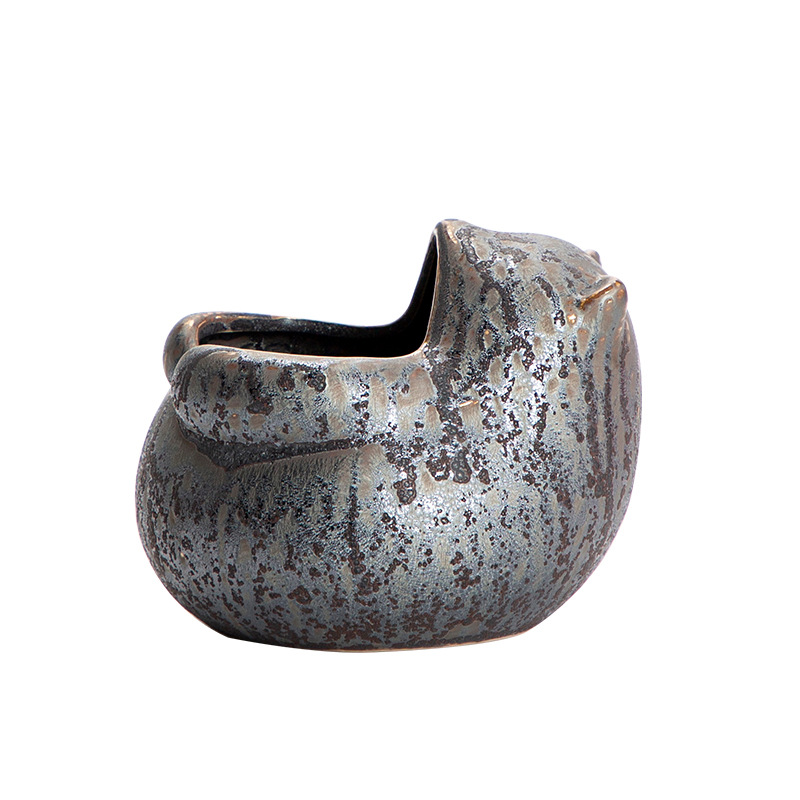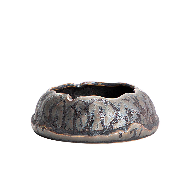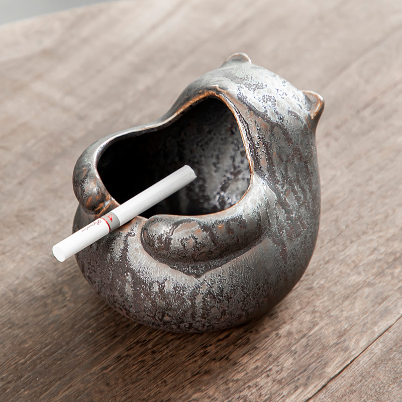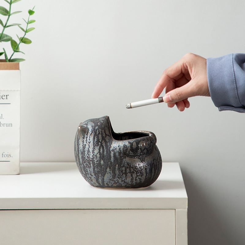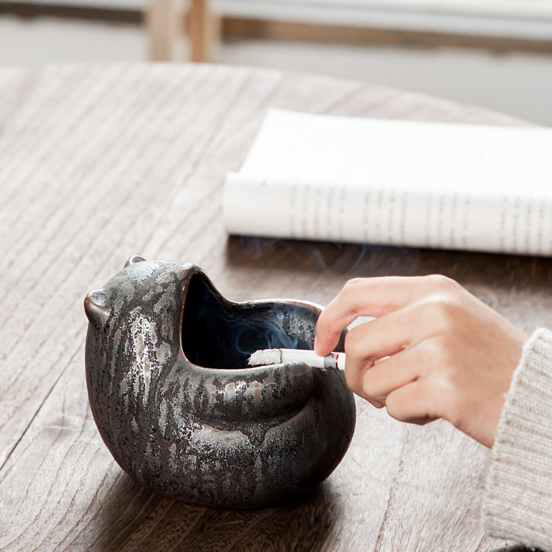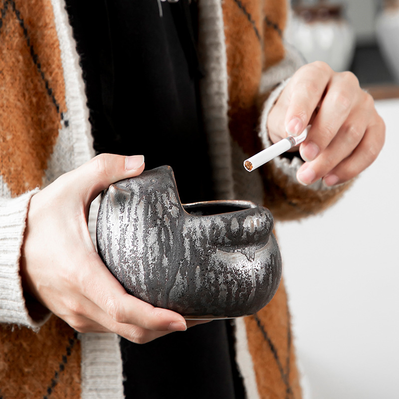 陶瓷烟灰缸创意个性时尚潮流家用茶道带盖铁锈釉粗陶办公客厅防风 投诉