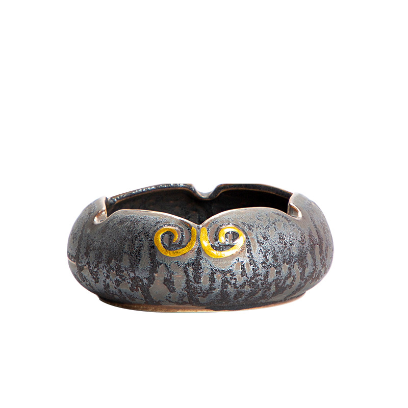 陶瓷烟灰缸创意个性时尚潮流家用茶道带盖铁锈釉粗陶办公客厅防风