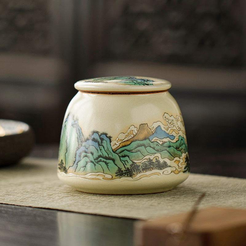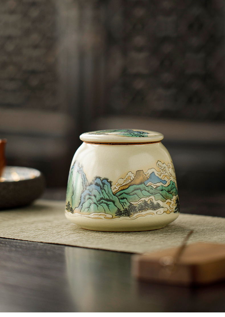 米黄汝窑陶瓷茶叶罐小号青绿普洱红绿茶叶包装密封香粉罐定logo 投诉