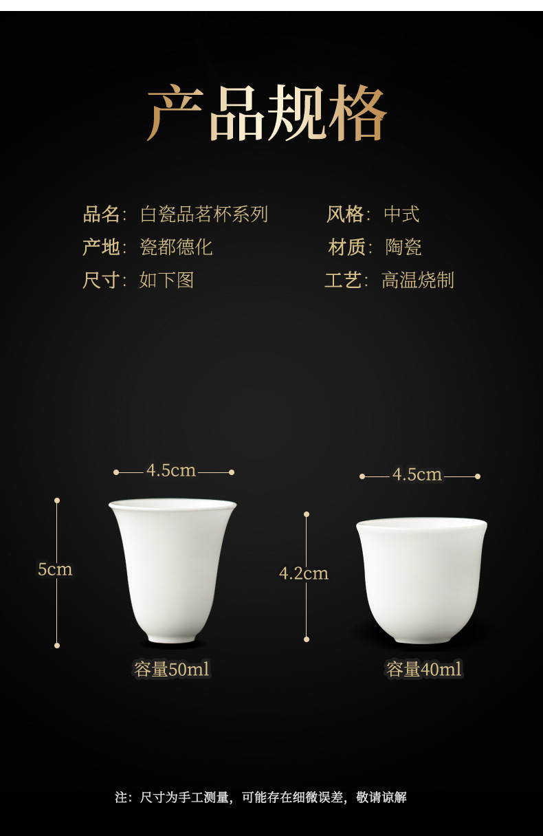 德化白瓷茶杯主人杯家用陶瓷杯单杯个人专用品茗杯客杯茶室定logo 投诉